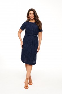Низ платья округлой, рубашечной формы. Обработан внутренними обтачками.