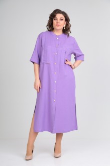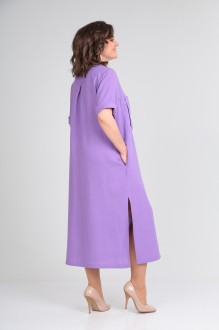 Платье женское свободного кроя прямого силуэта с застёжкой на петли и пуговицы. Перед с накладными карманами в области груди прямоугольной формы с застроченными защипами. Спинка с плечевой кокеткой и встречной складкой по центру. Боковые карманы обработаны в швах, по низу разрезы. Рукав втачной одношовный длиной до локтя. Воротник-стойка.