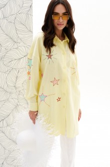 Платье женское, приталенного силуэта, длиной миди из трикотажного полотна. Платье с отрезным поясом по талии. Лиф переда с нагрудными вытачками и двумя листочками с декоративными пуговицами. Лиф спинки с талиевыми вытачками. В левом боковом шве застежка на потайную молнию. Горловина с отделочной планкой, сзади в среднем шве которой застежка на навесную петлю, пуговицу. Вырез горловины круглый. Рукав втачной, одношовный, длинный, на притачной манжете. Манжеты, пояс, листочки и планка горловины из однотонного отделочного компаньона.