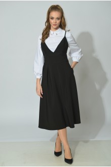 Платье полуприлегающего силуэта, спинка разрезная с талевыми вытачками и застежкой на тесьму «молния», внизу разрез. Перед разрезной по центру с втачным кантом и карманами. Рукава разрезные по центру с втачным кантом. Низ рукава и платья на подгибке с отделочной строчкой.