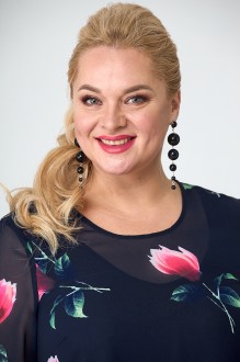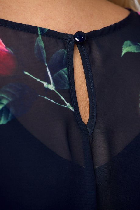 Платье из шифона с ярким цветочным принтом, расширенное, с повышением линии низа по переду. Модель без нагрудной вытачки, что позволяет создать прекрасную посадку на любую фигуру. Спинка со средним швом, вверху каплевидная застежка на пуговице. Рукава втачные, чуть ниже локтя, на эластичной кружевной тесьме. Платье на трикотажной подкладке. Очаровательная модель на все случаи.