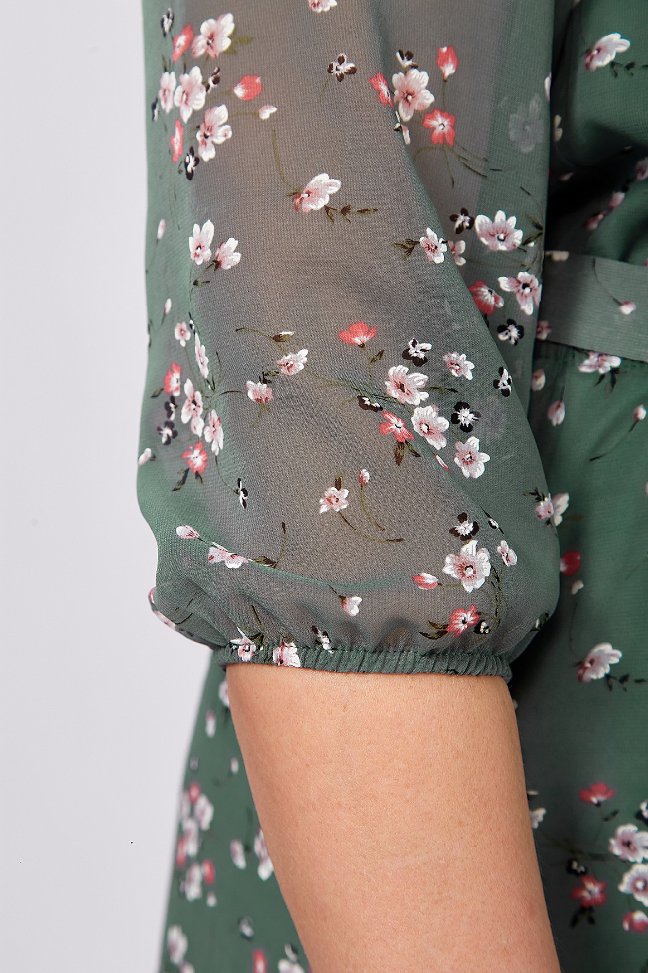 Шифоновое в цветочный принт платье - незаменимая вещь в гардеробе современной модницы. Расширенное к низу платье прямого силуэта на резинке по линии талии прекрасно скрывает нюансы фигуры и подчеркивает достоинства. На платье по рельефу переда юбки обработан разрез. Рукав длиной чуть ниже локтя, низ рукава на резинке. В комплект к платью входит сьёмный пояс. Длину изделия можно отрегулировать благодаря подрезу с резинкой на талии. Платье шикарно будет смотреться как с туфлями на каблуке, так и с кедами. Меняйте свой образ в зависимости от настроения и носите его как классическое, офисное, или как вечернее платье! Такое платье на любой случай просто просится в Ваш гардероб!