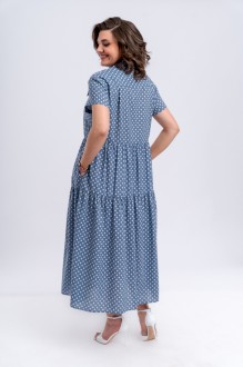 Платье женское прямого силуэта, расклешенное к низу. Платье отрезное по линии талии. Нижняя часть платья состоит из двух частей, собранных на сборку. В верхней части переда расположены нагрудные вытачки и горизонтальная кокетка, в шве притачивания которой расположены клапаны в виде бантиков. В верхней части спинки расположена горизонтальная кокетка, в шве притачивания которой расположены односторонние складки. Воротник – стояче-отложной с отрезной стойкой. Рукав втачной, короткий. Застежка платья выполнена в виде притачной планки по переду, которая застегивается на петли-пуговицы. В боковых швах расположены карманы. Нижняя часть платья на подкладке. Платье очень женственное, удобное, не сковывает движения, может подойти на все случаи в жизни, как для вечерних прогулок по городу, так и для работы.