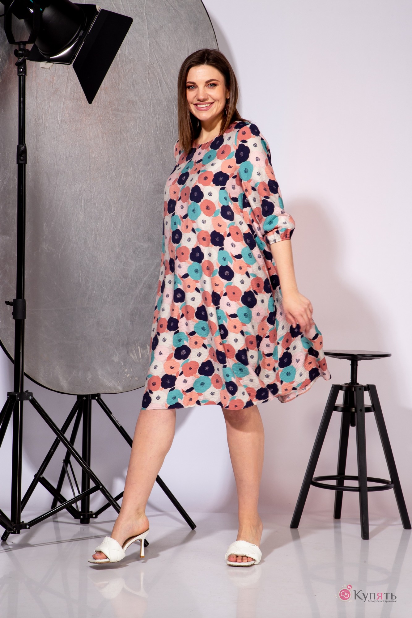 Платье женское из текстильной ткани, расширенное к низу. Изделие подойдет на любую фигуру. Перед цельный, спинка-сточная, горловина овальной формы. Рукава втачные, одношовные. Низ рукава на резинке. Длина рукава-3/4. Длина изделия-(50-54)-102 см.(56-60)-111 см.,длина рукава-(50-60)-45см.