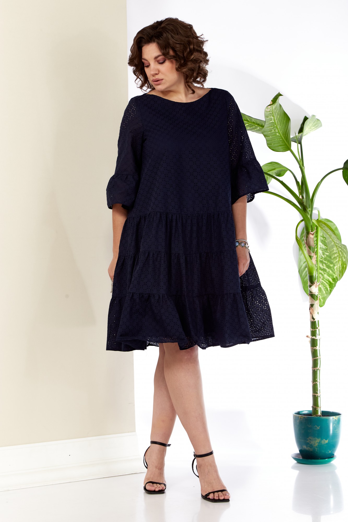 Платье женское из хлопковой ткани "ришель" на подкладке (хлопковой) станет базой вашего гардероба. Отлично будет смотреться с плещом, бомбером, пальто или как самостоятельная единица. Платье можно легко сочетать с любой обувью (босоножки, туфли, лоферы, кроссовки или кеды). Модель трапециевидной формы с 3-мя воланами. Рукав 3/4 длины также с воланом. Вырез горловины в форме лодочки. Платье можно легко сочетать с любой обувью (босоножки, туфли, лоферы, кроссовки или кеды).