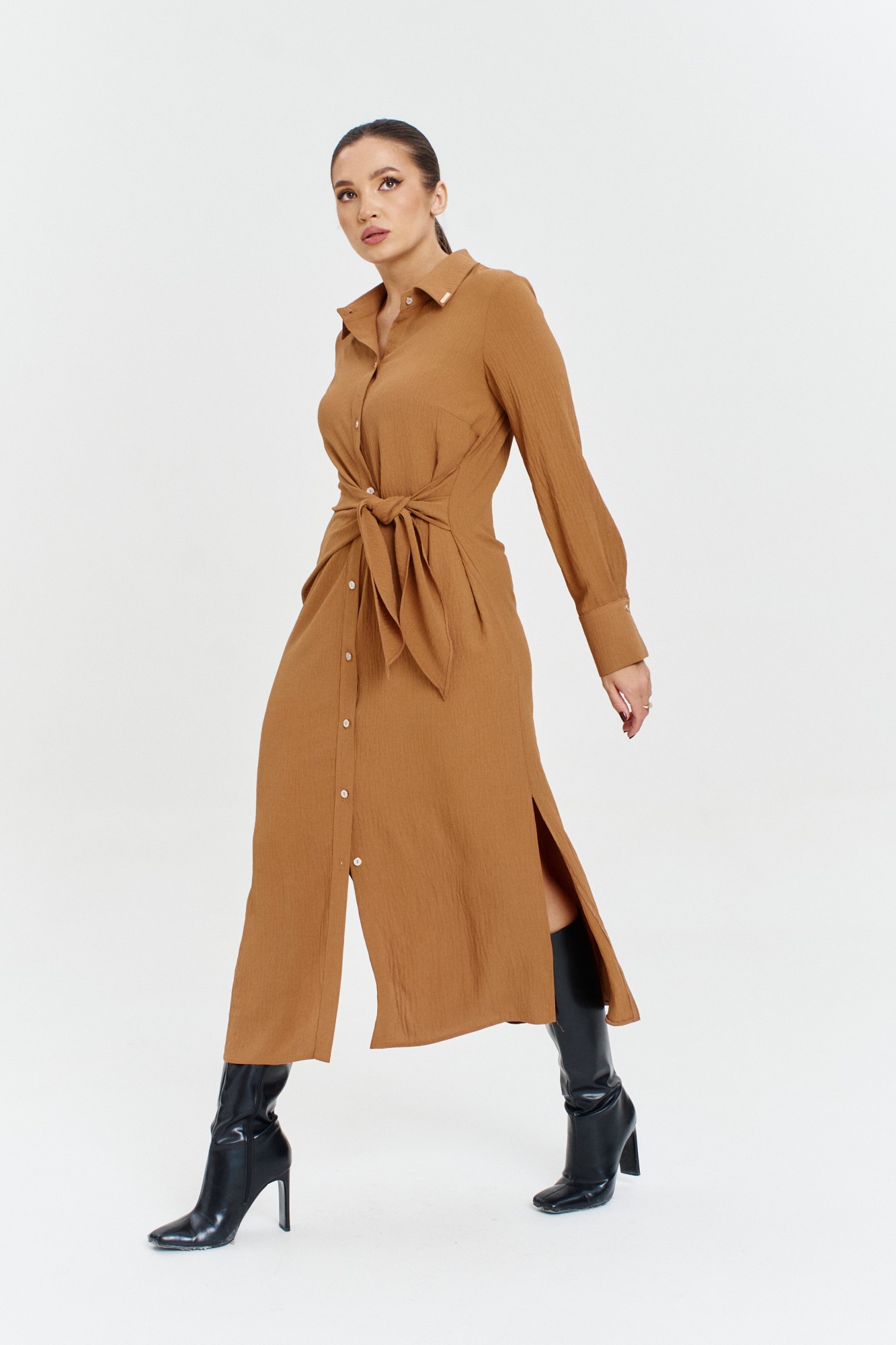 Платье рубашка от бренда «Анастасия» - создано для тех, кто ценит комфорт и элегантность. Изготовленное из турецкой ткани, оно обеспечивает мягкость и легкость при носке. Платье оригинального кроя. Полочка ассиметричная: с одной стороны идет драпировка, переходящая в пояс, со второй стороны: пояс-завязка из бокового шва. Застежка -планка на петли и пуговицы. Платье миди дополнено отложным воротником и длинными рукавами на манжете. Платье с пуговицами спереди подходит практически всем. Нарядное платье идеально для повседневной носки и стиля casual кэжуал. Повседневное платье рубашка - необычный вариант на каждый день, для прогулок, встреч в кафе и даже для работы, если позволяет дресс-код. Наряд надевают не только на повседневку, но и на фотосессию, на праздничные мероприятия – день рождения, новый год, новогодняя вечеринка. Модное платье с длинными рукавами можно комбинировать с разной обувью и одеждой для создания молодежных образов. Стильное платье идеально подойдет для повседневных выходов, особенно когда нужно добавить шарма и изящности в ваш образ. Оно также станет отличным выбором для особых случаев, таких как свадьба подруги, новогодний вечер или другие праздничные мероприятия. Универсальная длина миди и классический фасон рубашки делают его отличным выбором как для повседневного, так и для делового образа. Идеальное сочетание стиля и удобства для тех, кто ценит изысканность в каждой детали. Нам важно ваше мнение отзывы.