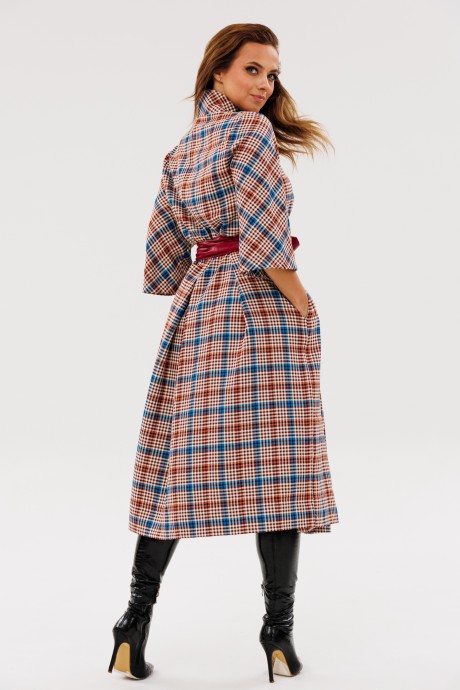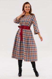 Шикарное женское платье из хлопка. Идеально на любую погоду: под босоножки либо под сапоги и пальто. Отличный вариант универсального изделия: подойдет как для повседневного и офисного гардероба, так и для праздничного выхода. Отрезное по линии талии. По полочке объем груди создается за счет направленных складок из подреза. Объем юбки создается за счет центральной встречной и 2-х односторонних складок. По бокам в юбке- карманы. Рукав втачной, 3/4 длинны с отворотом. Вырез горловины лодочка с отложным воротником. В комплекте съемный пояс.
