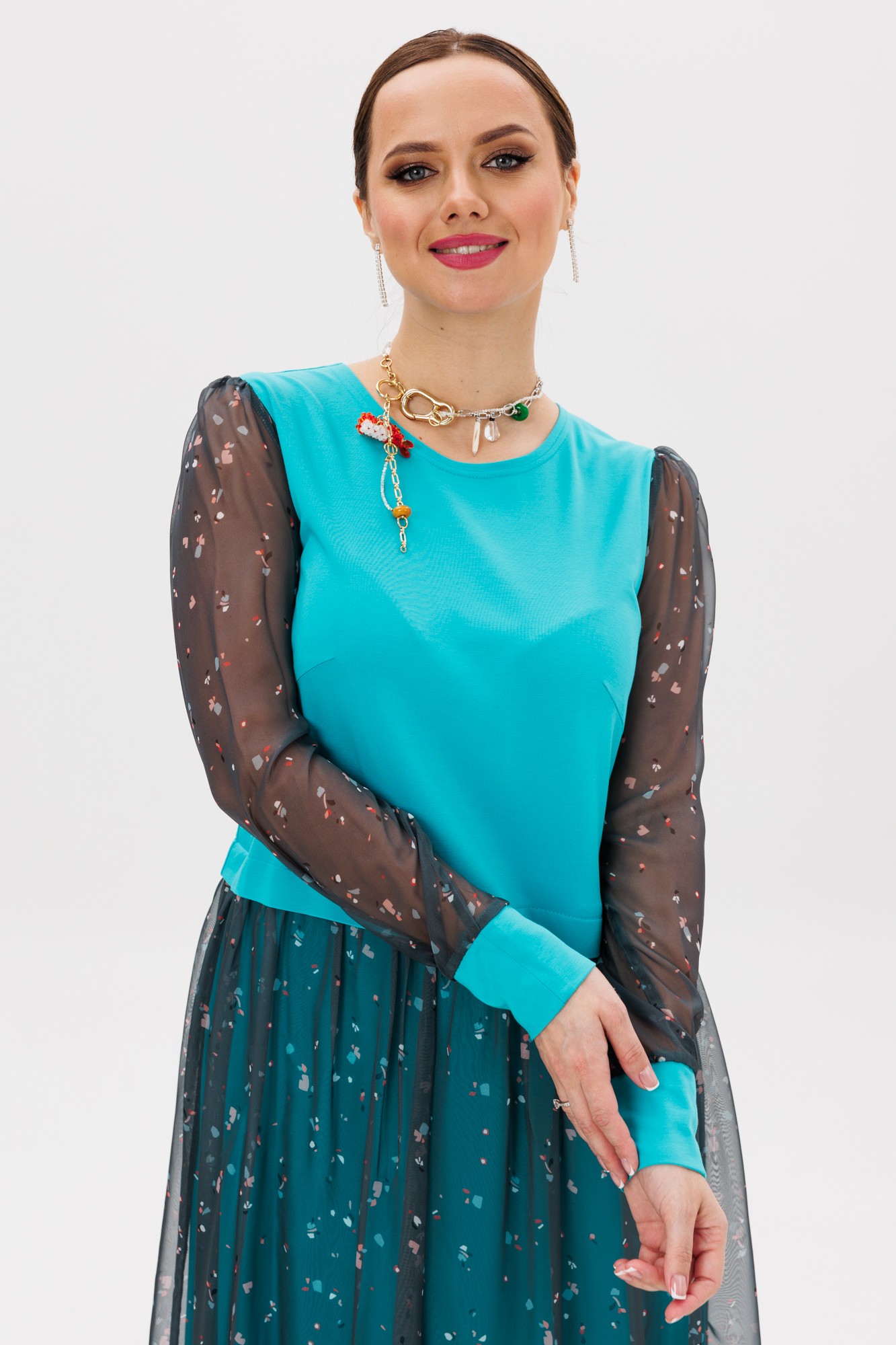 Элегантное женское платье прямого силуэта из двух видов ткани: спинка, полочка и манжет из трикотажного полотна. Рукава и юбка из шифоновой ткани. Платье отрезное по линии талии со сборкой, из бокового шва идет грудовая выточка, рукав на манжете со сборкой по окату. Юбка на подкладке. Благодаря своему крою палтье идеально сядет на любой тип фигуры. Благодаря женственному силуэту вы будете всегда ощущать себя красивой и модной. Каждое наше изделие выполнено на нашем производстве, мы тщательно подходим к отбору наших тканей, фурнитуры и выбираем для Вас только самое лучшее. Качественный крой, идеальная посадка и материалы обеспечат комфорт в течение всего дня.