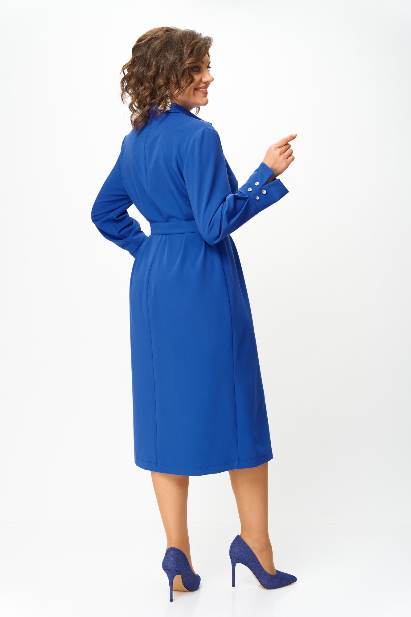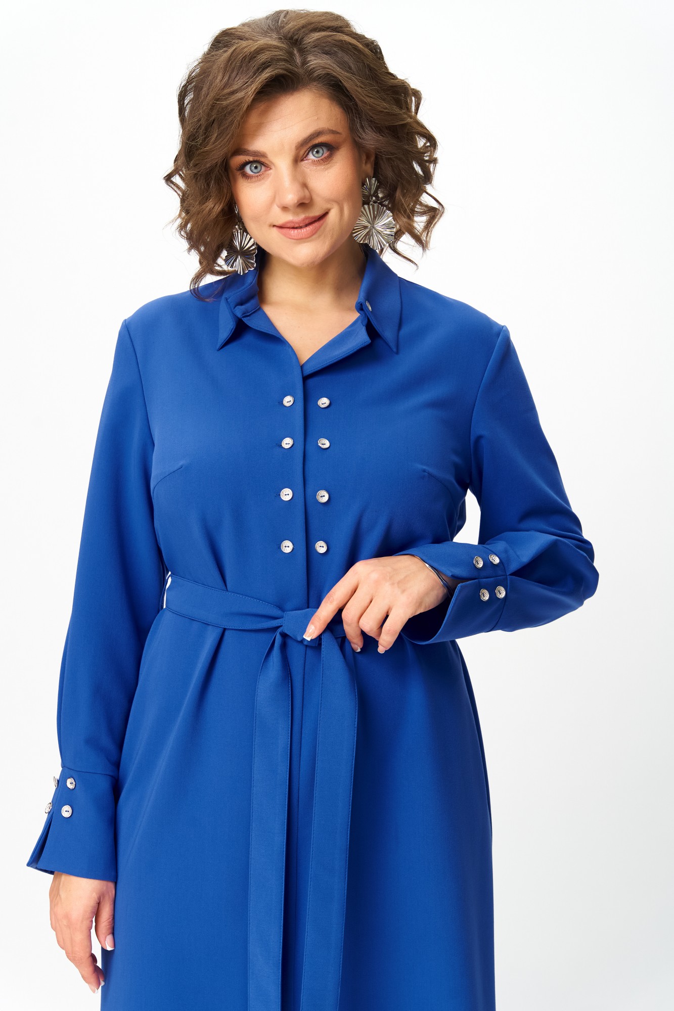 Элегантное и стильное платье от бренда Anastasia Mak идеальный выбор для современной женщины, которая ценит комфорт и стиль. Платье отлично подойдет на каждый день, в офис, для праздника или вечеринки. Платье прямого силуэта, длиной за колено, выполнено из однотонной ткани. Полочка платья с центральным швом, в верхней части которого выполнена оригинальная застежка на петли и пуговицы, в нижней части центрального шва полочки обработана шлица. Полочка с нагрудными вытачками. Горловина круглой формы с воротником рубашечного типа. Спинка со средним швом. Рукав втачной, одношовный, длинный, по низу со складкой и притачной манжетой. Манжета с разрезом по низу и декором из пуговиц. По боковым швам в области талии настрочены шлевки, через которые продет пояс, завязывающийся спереди.