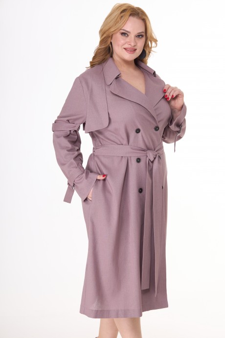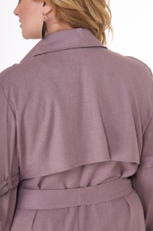 Прямой свободный силуэт со всеми деталями классического тренча: отлетные кокетки по переду и спинки, с карманами, патами на свободных втачных рукавах, отложным воротником на стойке и лацканами, двубортной застёжкой на пуговицы и завязывающимся поясом.
