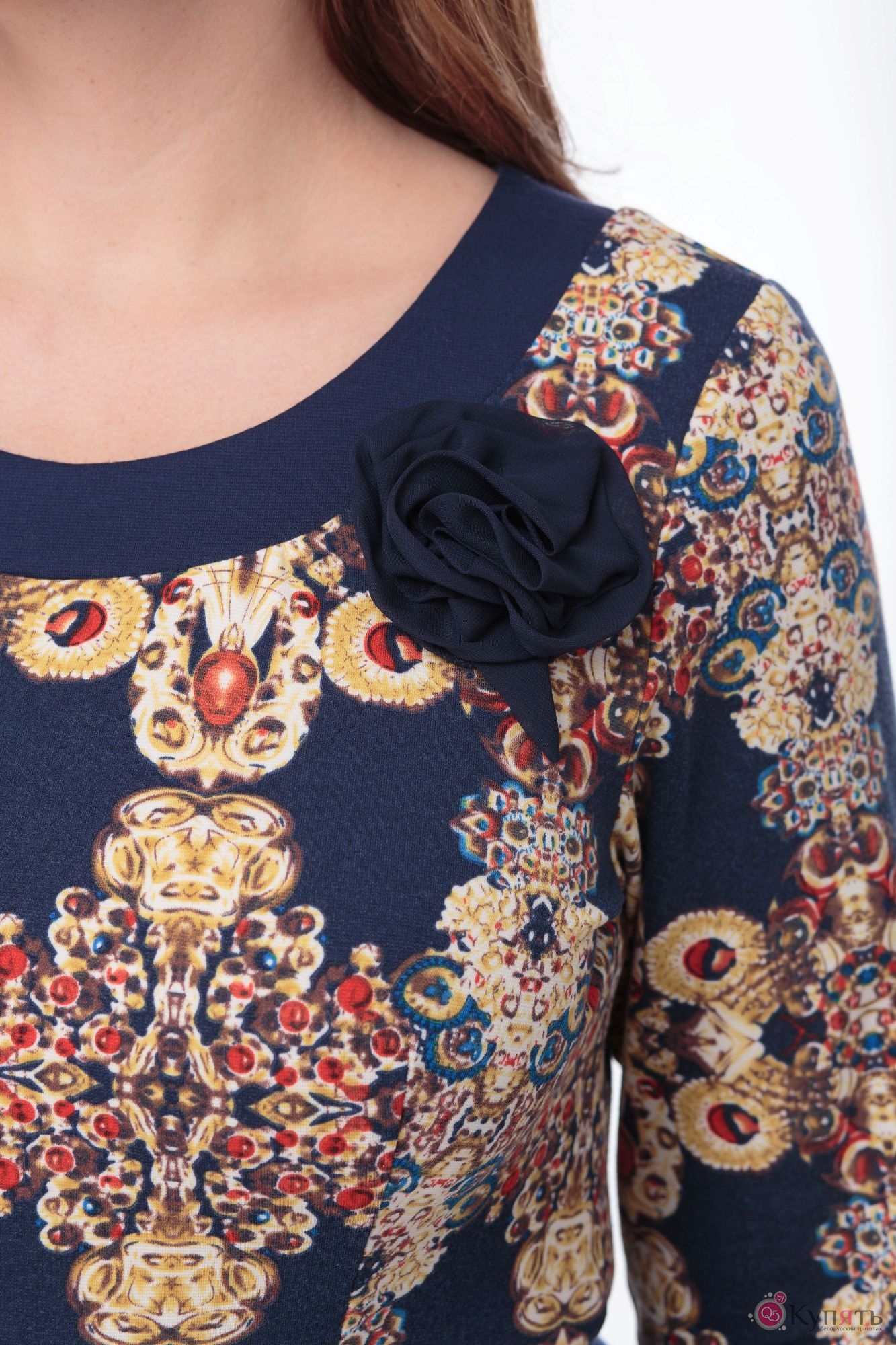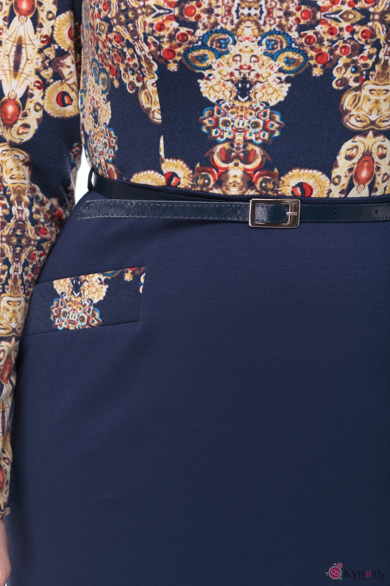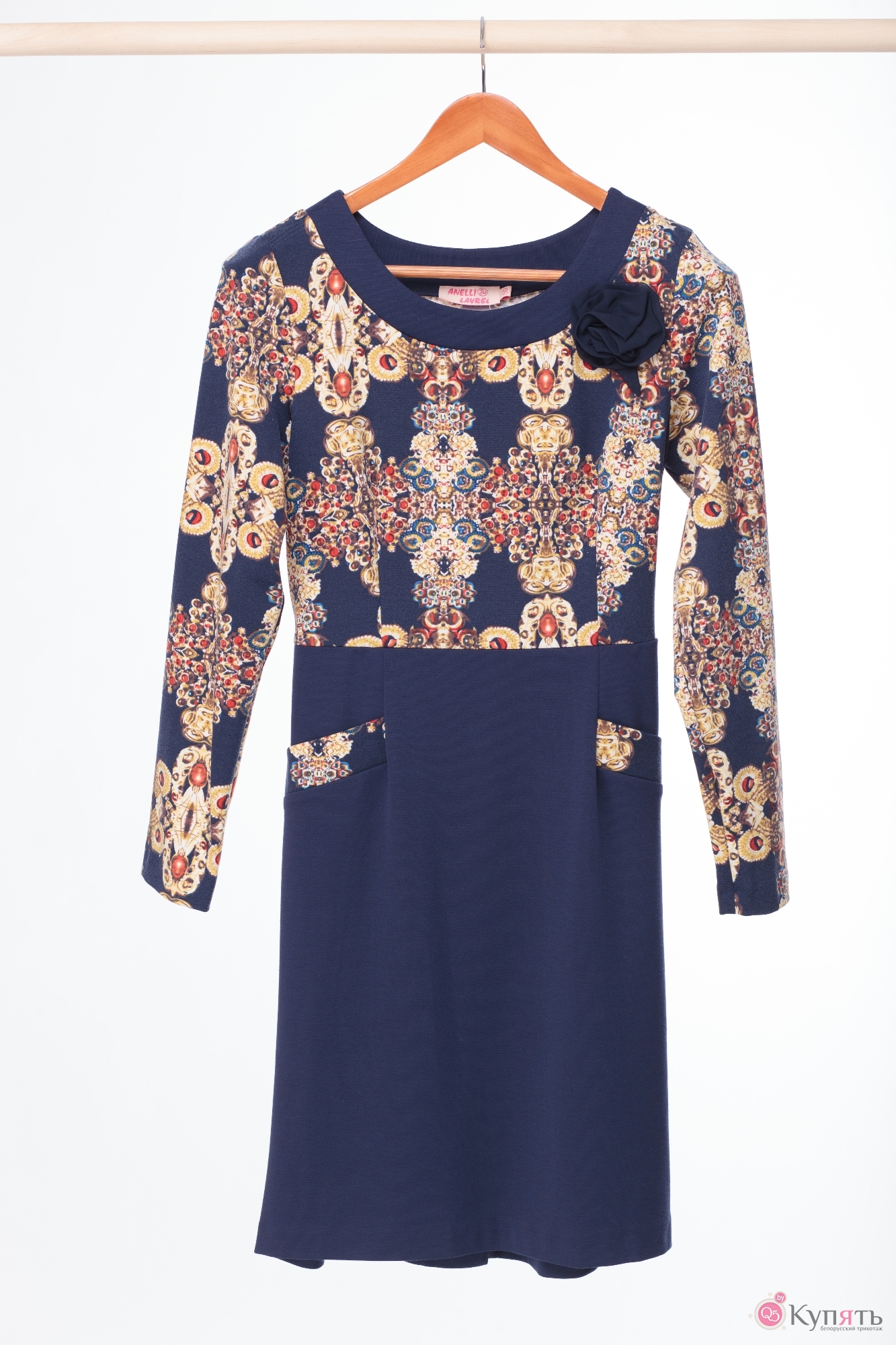 Теплое платье, карманы и съемный пояс. Отрезное по линии талии. Ткань-трикотаж. Хорошо тянется. Представлено в двух расцветках: синий с белым и синий с желтым принтами.