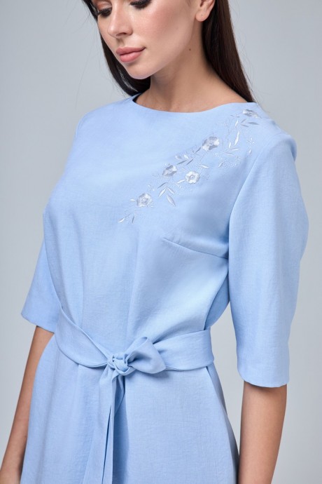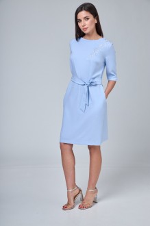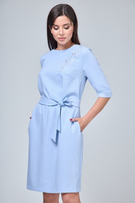 Любимая нами модель повседневного платья для ярких будней!Прямой силуэт, элегантный вырез округлой формы по переду и v-образный по спинке, втачной 3/4 рукав. Удобные карманы в боковых швах. По среднему шву спинки имитация застежки на пуговицы. Дополнено съёмным завязывающимся поясом. Правильная длина ниже колена.