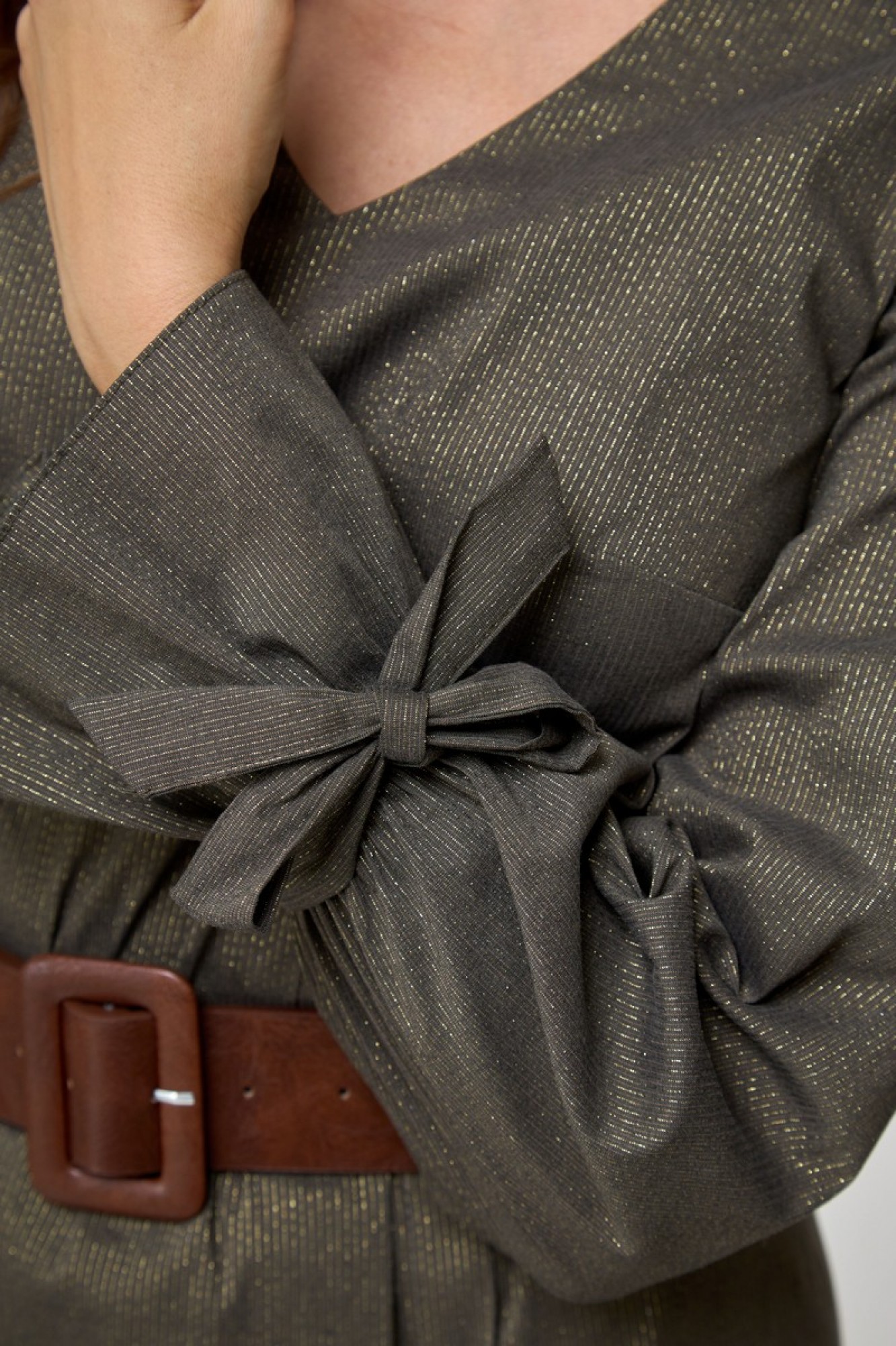Рукав втачной, длинный, декоративный бант на запястье. По переду V-образный вырез, резинка по талии и игривый женственный разрез. Платье идеальный вариант для осени, в нем вы будете чувствовать себя легко, женственно и стильно.