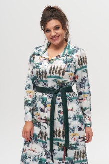 Рукав втачной, длинный, низ на манжете. По переду планка на петли пуговицы на всю длину платья. В боковых швах разрезы и карманы на уровне бедер. Горловина обработана воротником со стойкой.