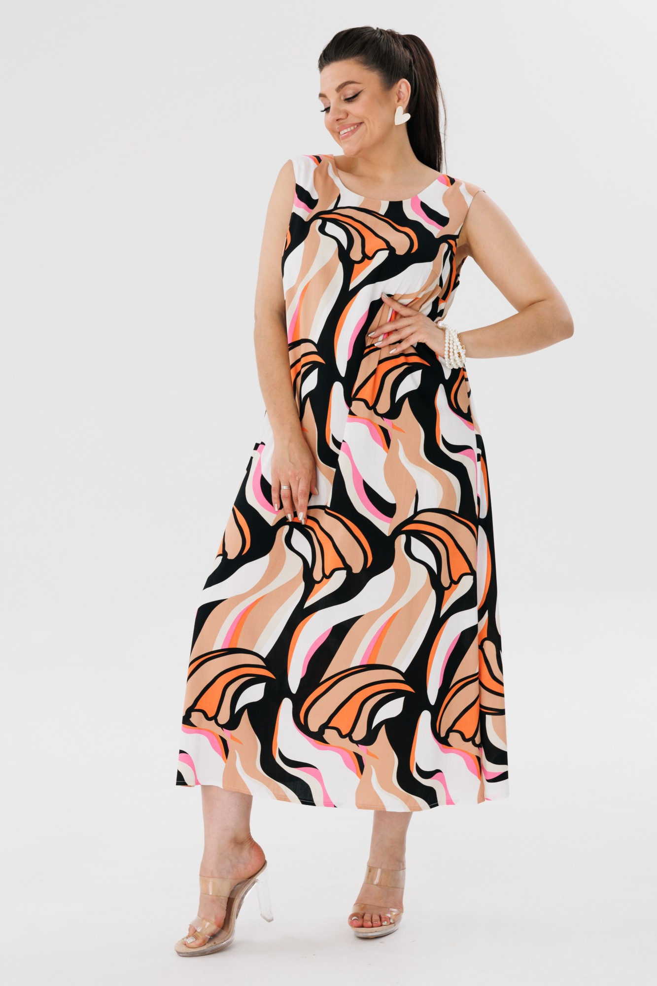 Не упустите возможности чувствовать себя роскошно в этом сарафане из натуральной ткани и авангардным принтом от Анелли.