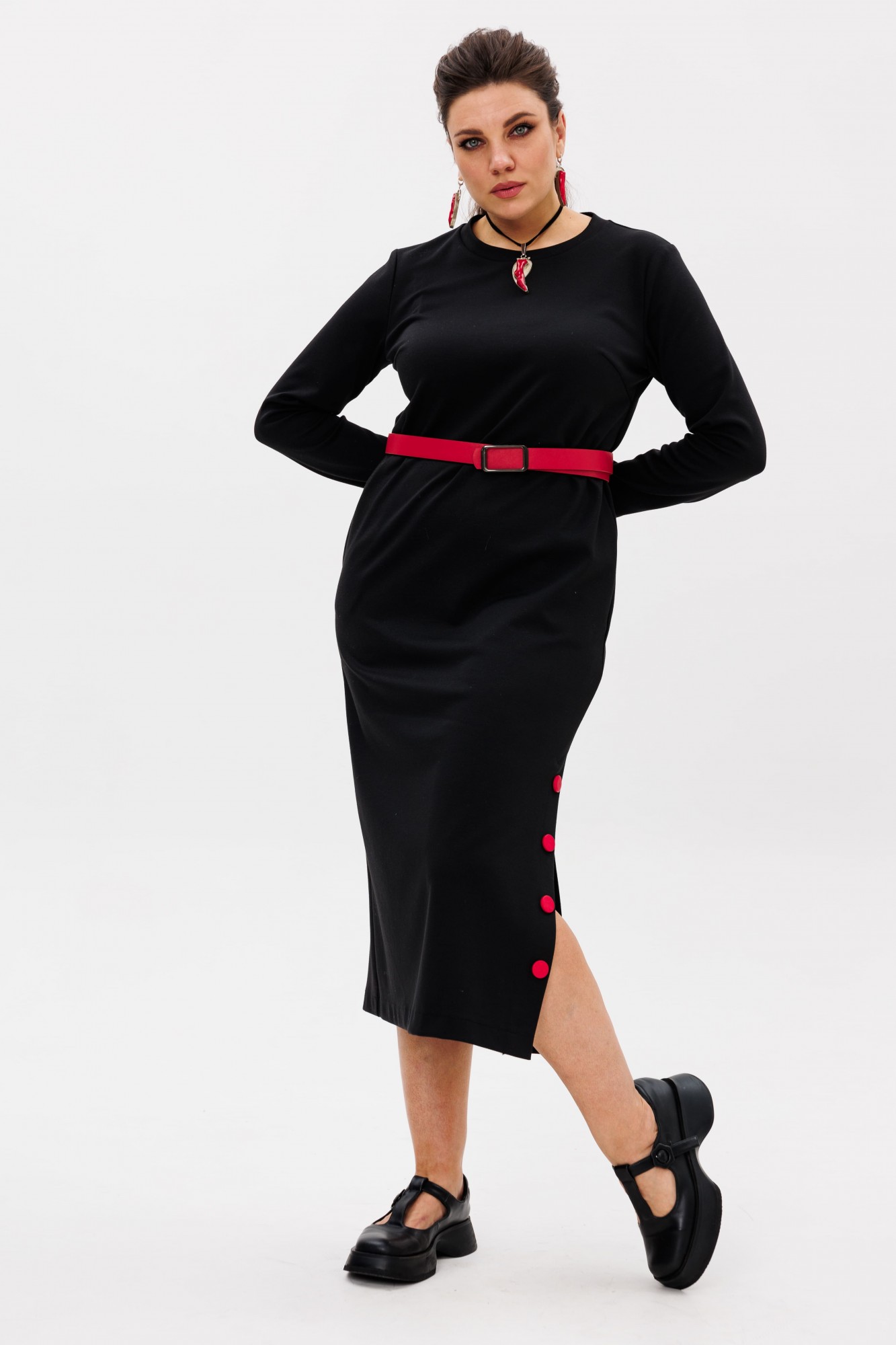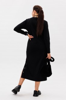 Особенность модели — стильная шлица на кнопках, расположенная сбоку, которая не только добавляет оригинальности, но и позволяет варьировать образ: расстегнув несколько кнопок, можно создать лёгкий, игривый акцент. В боковых швах предусмотрены карманы, что делает платье ещё более практичным и удобным.