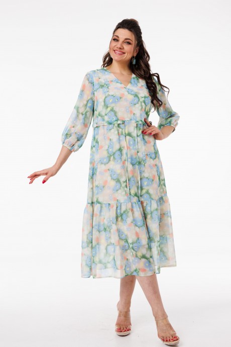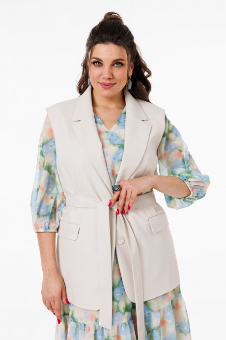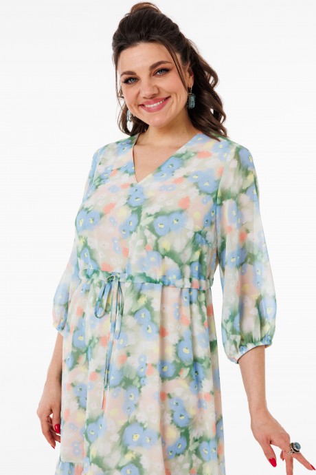 Погрузитесь в мир элегантности и утонченности с этим потрясающим платьем А-силуэта. Его изысканный V-образный вырез нежно обрамляет шею, придавая образу особую грацию и шарм. Рукава длиной 3/4, выполненные с легким расширением к низу, добавляют воздушности и романтики, а резинка на рукавах обеспечивает комфорт и свободу движений. Завышенная линия талии подчеркивает вашу фигуру, создавая эффект удлиненных ног и придавая силуэту современный вид. Умело скроенная кулиска позволяет легко регулировать объем в области талии, что делает платье не только стильным, но и удобным для любой фигуры. Подкладка из мягкого материала обеспечивает комфорт при носке, предотвращая просвечивание и создавая идеальную структуру. А волан по низу платья добавляет игривости и динамичности, придавая вашему образу легкость и романтичность. Это платье от Анелли станет вашим верным спутником на любом мероприятии, подчеркивая вашу индивидуальность и стиль. Ощутите себя королевой в этом великолепном наряде, который сочетает в себе красоту, комфорт и изящество. На модели в платье «цвета весны» жилет 1502.1.