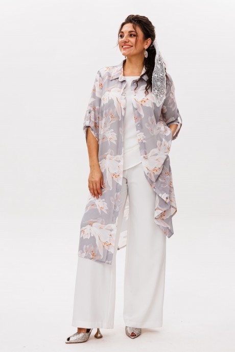 Шазюбль – изысканная длинное платье-рубашка из воздушного шифона, созданная для тех, кто ценит элегантность и комфорт в каждой детали. Свободный крой мягко обволакивает силуэт, даря ощущение лёгкости и непринуждённости. Отложной воротник на стойке добавляет нотку строгости, сохраняя при этом утончённый шарм. Застёжка на петли и пуговицы позволяет регулировать степень открытости, создавая разные образы – от сдержанного до романтичного. Рукав три четверти с регулируемым хлястиком подчёркивает женственность линий, а боковые разрезы придают динамику и лёгкость движению. Шазюбль от Анелли – это не просто рубашка, а многофункциональная вещь, которая легко сочетается с брюками, шортами или платьем, добавляя образу слоистость и глубину. Лёгкий шифон защитит от летнего ветерка, не утяжеляя силуэт, а стильный принт «лилии в тумане» сделает вас заметной в любой ситуации. Это та самая вещь, в которой удобно, красиво и невероятно стильно. Шазюбль – для тех, кто любит моду без границ. Рост модели 173 см, размер 52. Для того чтобы подобрать для себя идеальный размер, обязательно сверяйтесь с замерами в описании, мы их делаем индивидуально к каждому изделию. На модели топ 1576 и молочные брюки 1416.1.