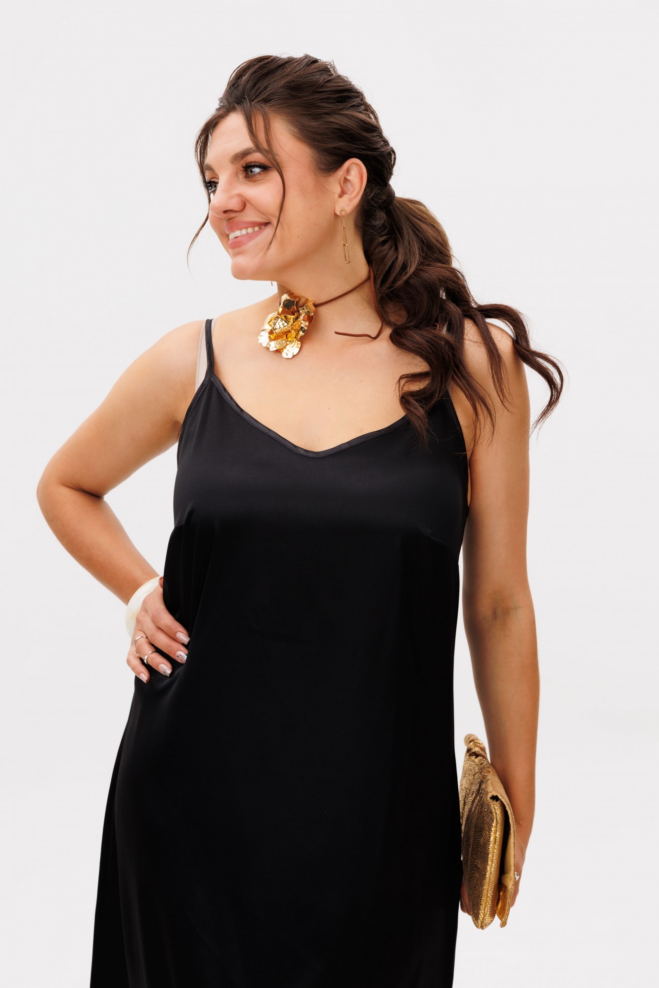 Это платье- комбинация от Анелли — воплощение универсальности и вневременной элегантности. Его простая, но утонченная форма создана стать идеальной основой для любого образа. Модель с регулируемыми бретелями подчеркивает красоту и индивидуальность.