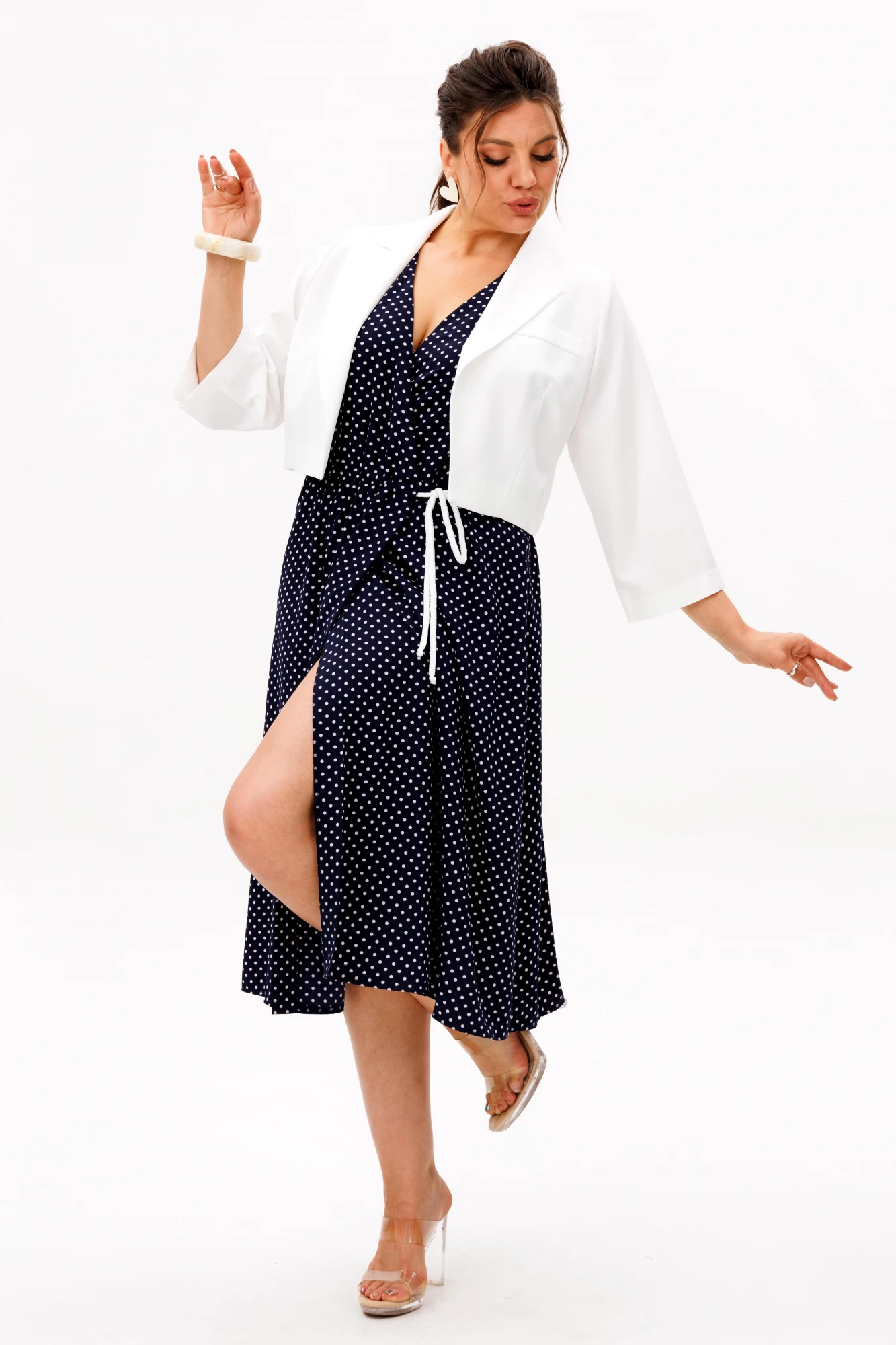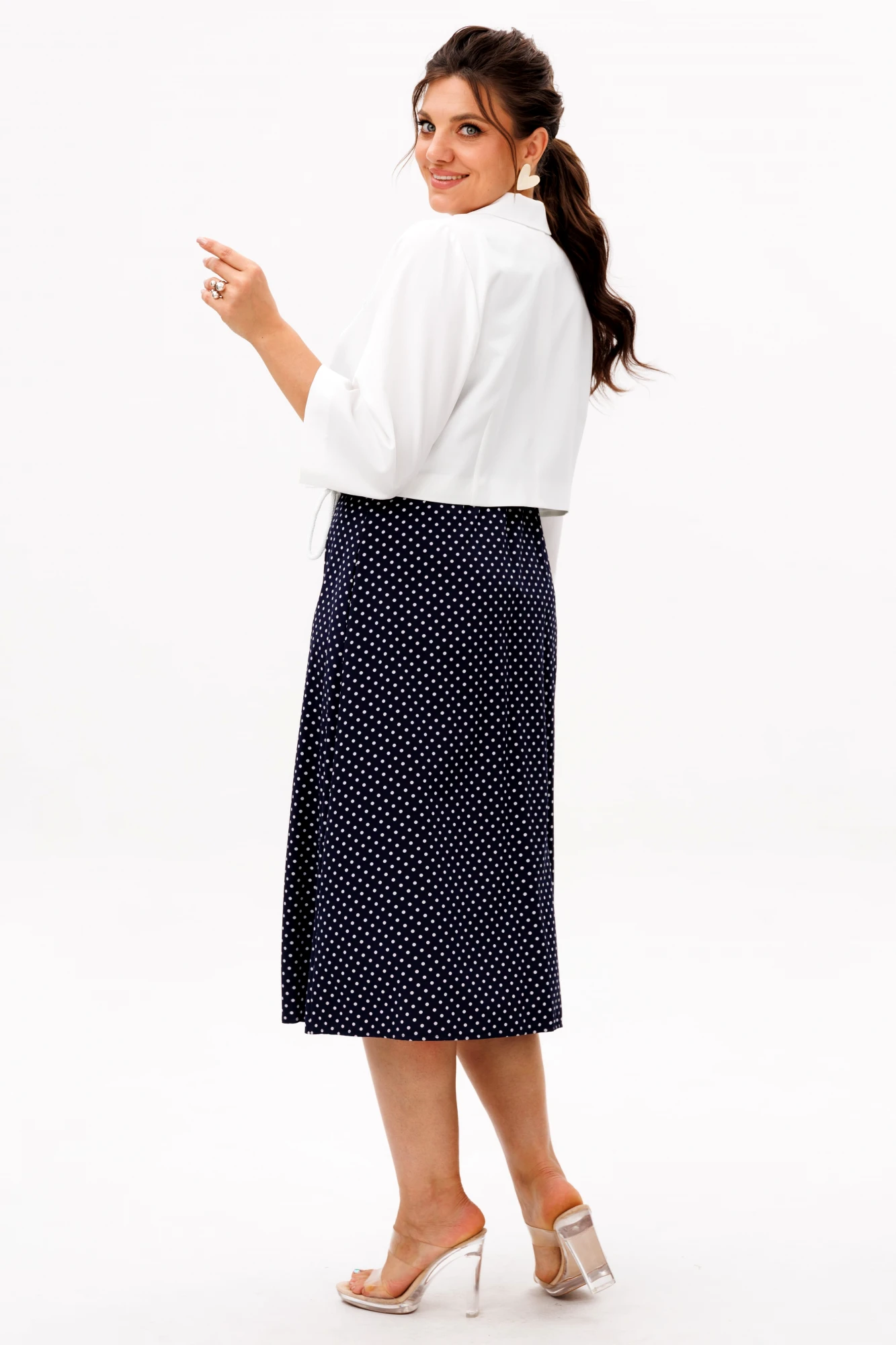 Платье легко становится самостоятельным акцентом образа, но особенно гармонично раскрывается в комплекте с кроп-жакетом 1708.2, создавая стильный и завершённый костюм 1708. Модель можно приобрести отдельно или собрать полноценный комплект, выбирая настроение и стиль под каждый день.