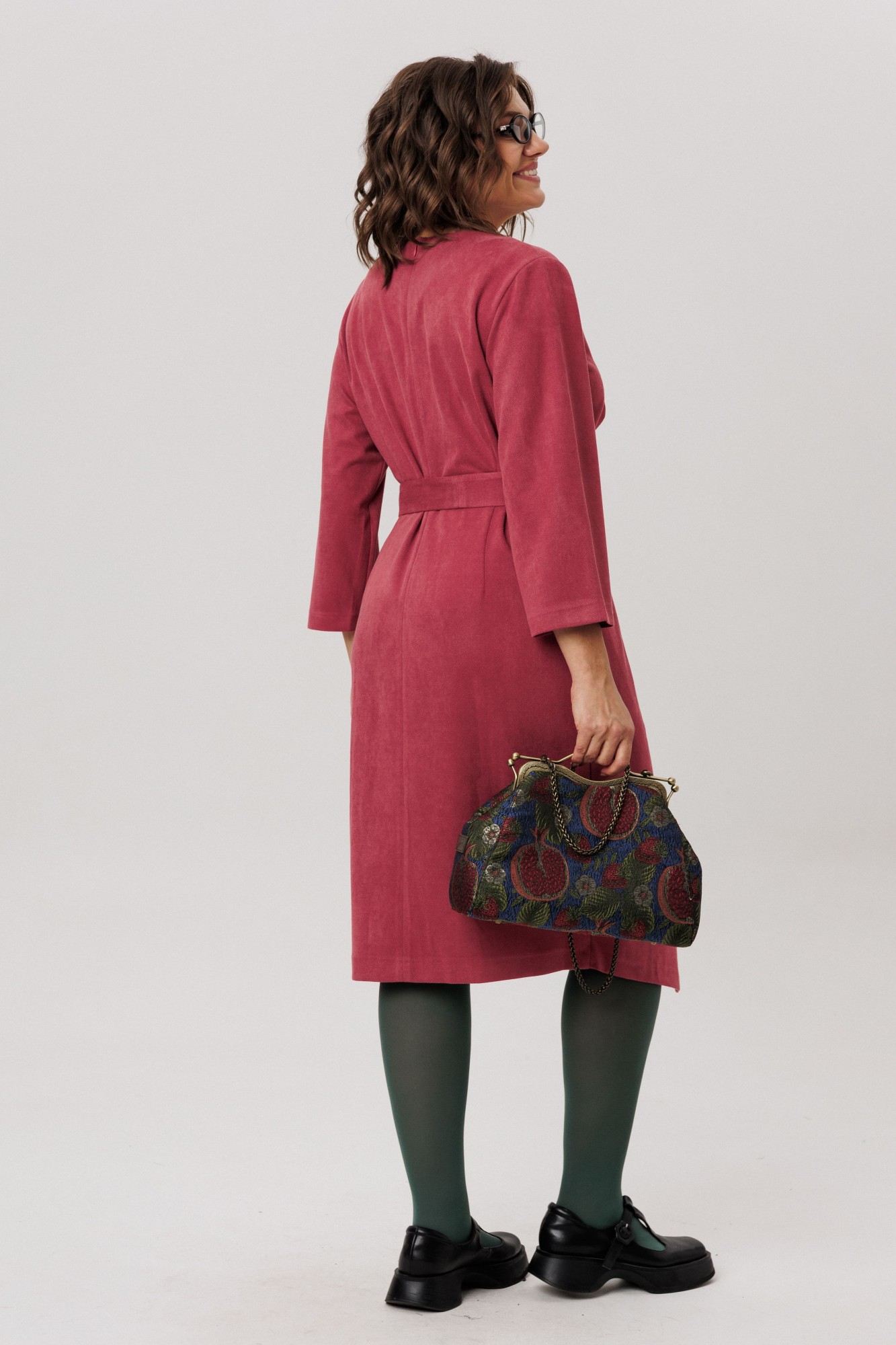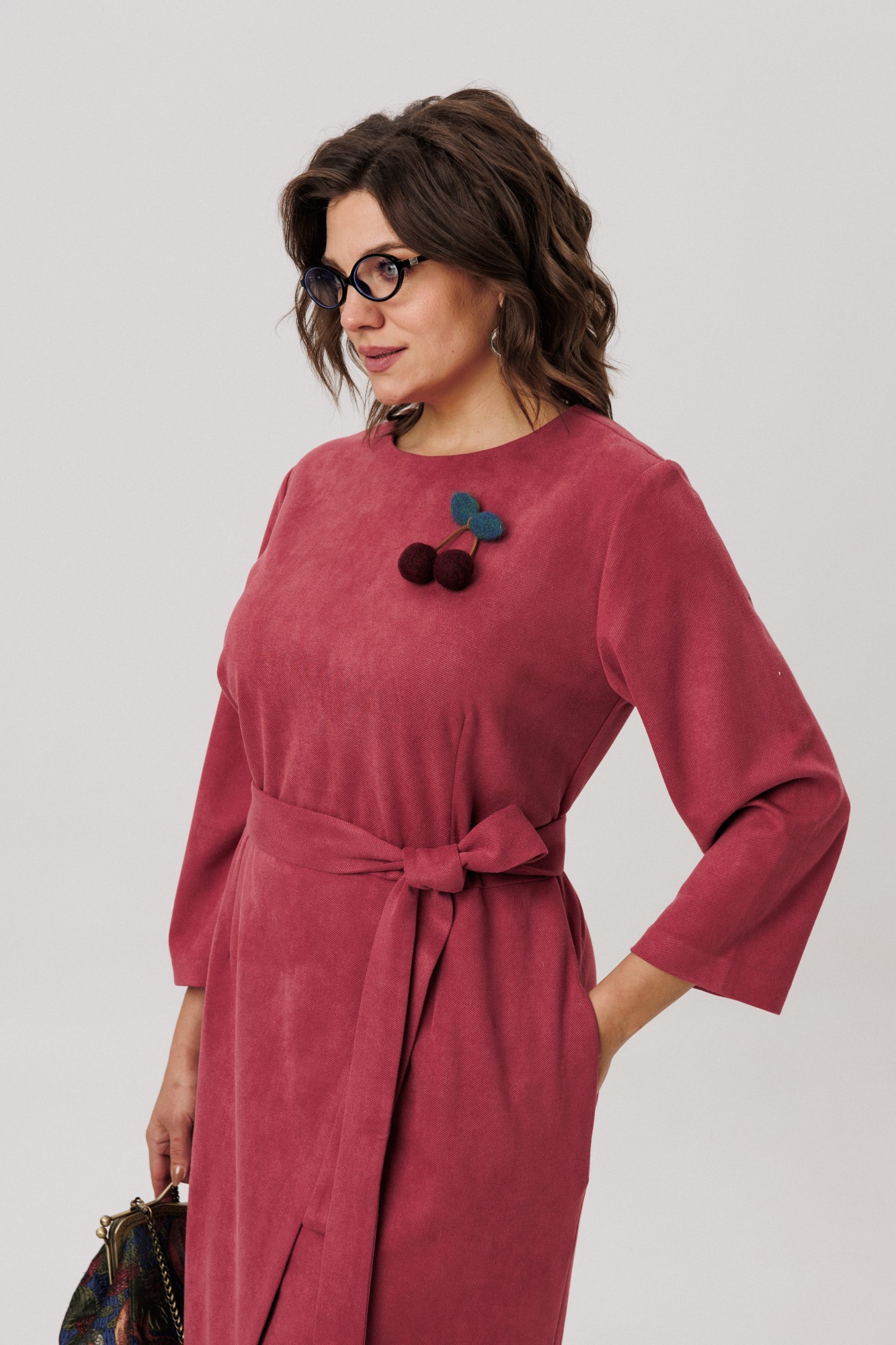Потайная молния по спинке элегантно подчеркивает изящные линии и изгибы. Трехчетвертной рукав элегантно открывает линию запястья приковывая внимание. В качестве аксессуаров к платью можно добавить кожаный ремень, вместо родного тканевого. Массивные серьги или украшения на шею.