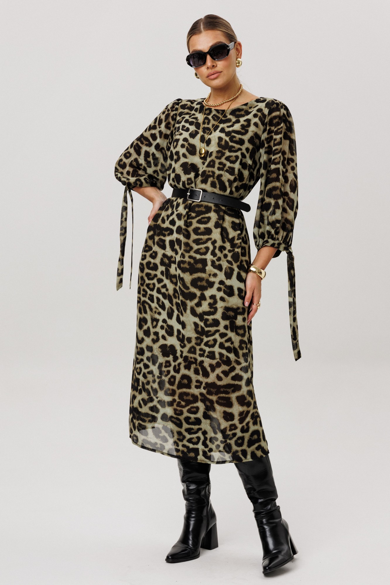 Завязки на рукавах добавляют особого шарма, подчёркивая индивидуальность, а изящные разрезы вдоль юбки — смелости и элегантности вашему образу.