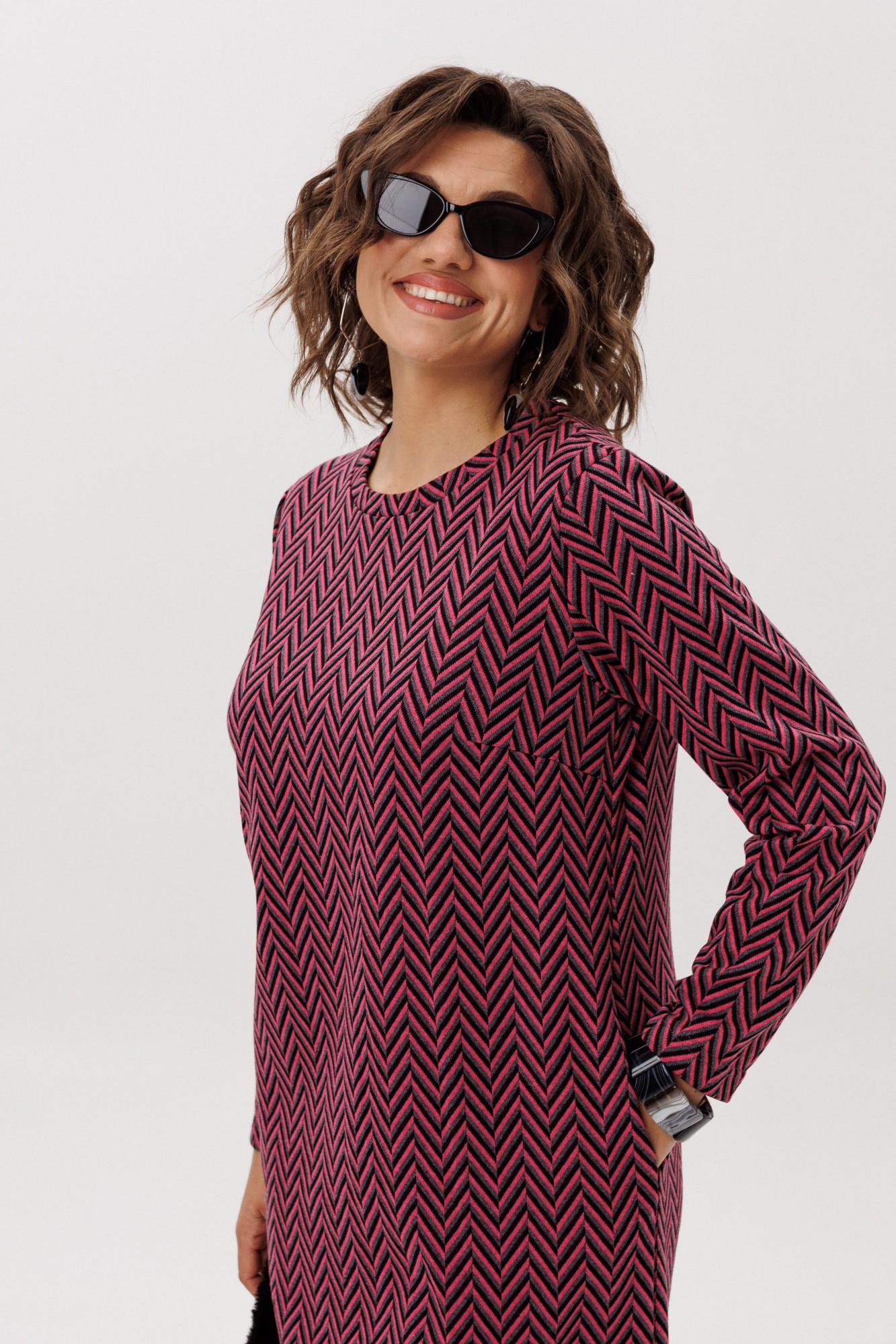 Элегантное трикотажное платье от Анелли, прямого силуэта, созданное для комфорта и уверенности в повседневной жизни. Изготовлено из мягкой и приятной к телу ткани, которая дарит ощущение лёгкости и тепла. Втачной рукав придаёт образу классический акцент, делая платье универсальным и стильным выбором на каждый день. Особенность модели — стильная шлица на кнопках, расположенная сбоку, которая не только добавляет оригинальности, но и позволяет варьировать образ: расстегнув несколько кнопок, можно создать лёгкий, игривый акцент. В боковых швах предусмотрены карманы, что делает платье ещё более практичным и удобным. Этот повседневный наряд отлично подойдёт для самых разных ситуаций — от утренней прогулки до встреч с друзьями или походов в кафе. Яркий и необычный принт привлекает внимание и выделяет ваш образ, подчеркивая вашу индивидуальность. В таком платье вы всегда будете выглядеть стильно и чувствовать себя уверенно, сохраняя при этом комфорт и лёгкость движений. На модели в платье цвета «рябиновая волна» жакет 1524.2.