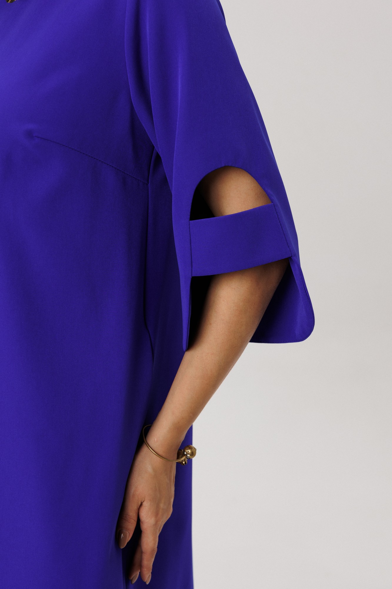 Платье от Анелли, воплотившее в себе торжественную элегантность, построено на безупречном крое и продуманных деталях. Его силуэт-трапеция, ниспадающий до длины, слегка прикрывающей колено, создает современный и уверенный образ.