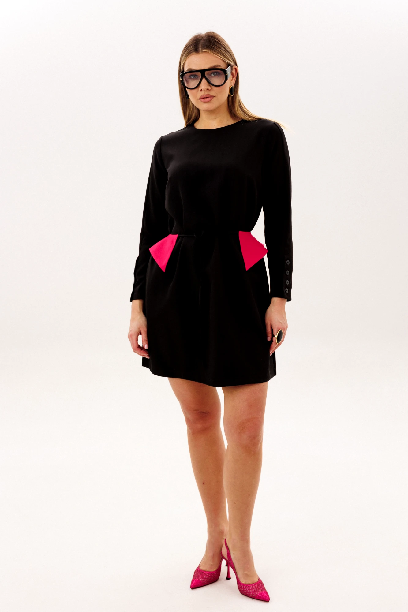 Но главное чудо прячется в воротнике. Он съёмный и двусторонний - маленькая деталь, которая меняет всё. Сегодня он может быть неотъемлемой частью образа, сливаясь с платьем по цвету, завтра - заиграть контрастом, а послезавтра вы решите, что самое красивое - это простота, и оставите горловину открытой. А в боковых швах, словно приятный секрет, спрятаны карманы, куда так удобно прятать руки или мелочи.