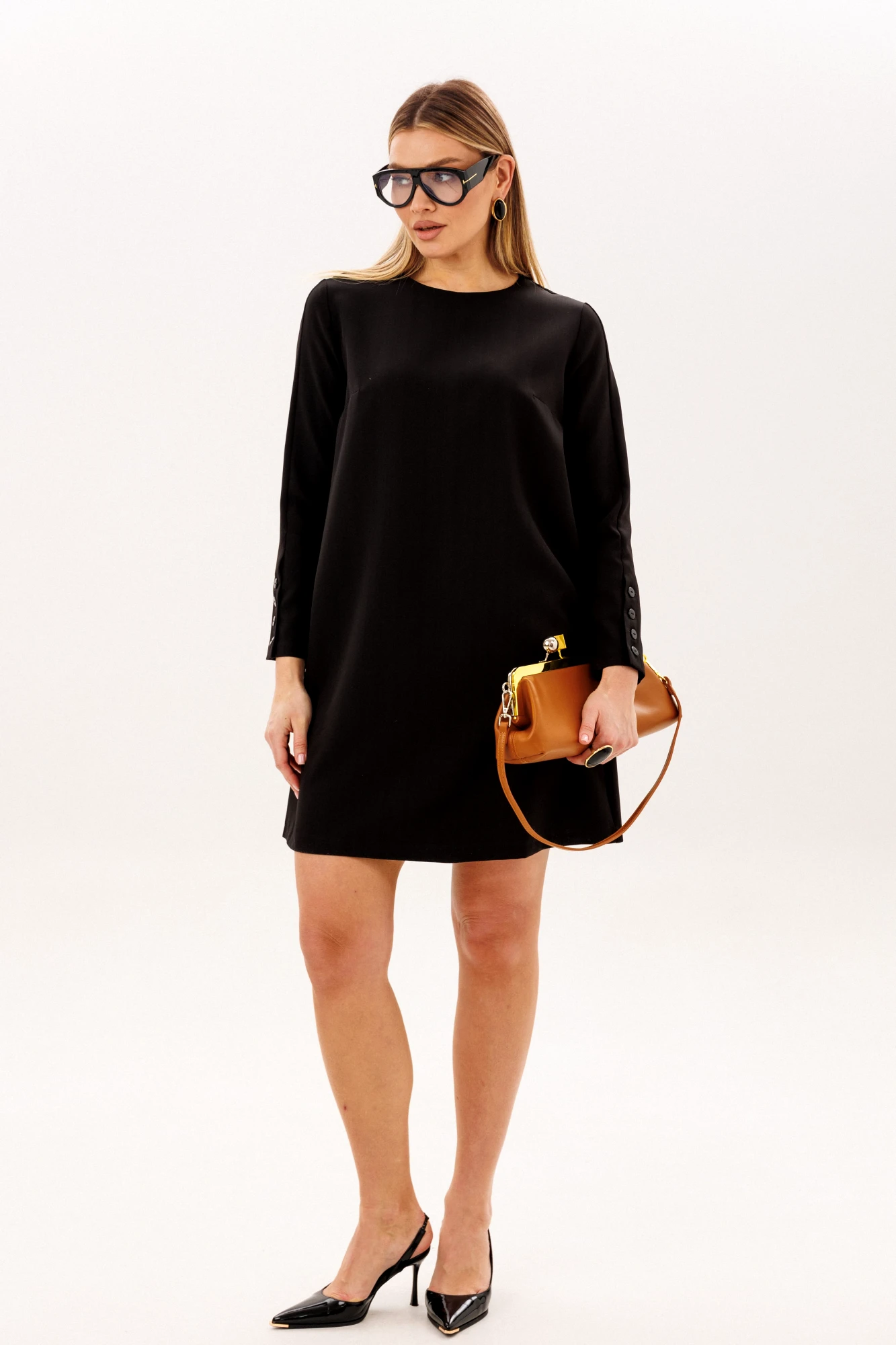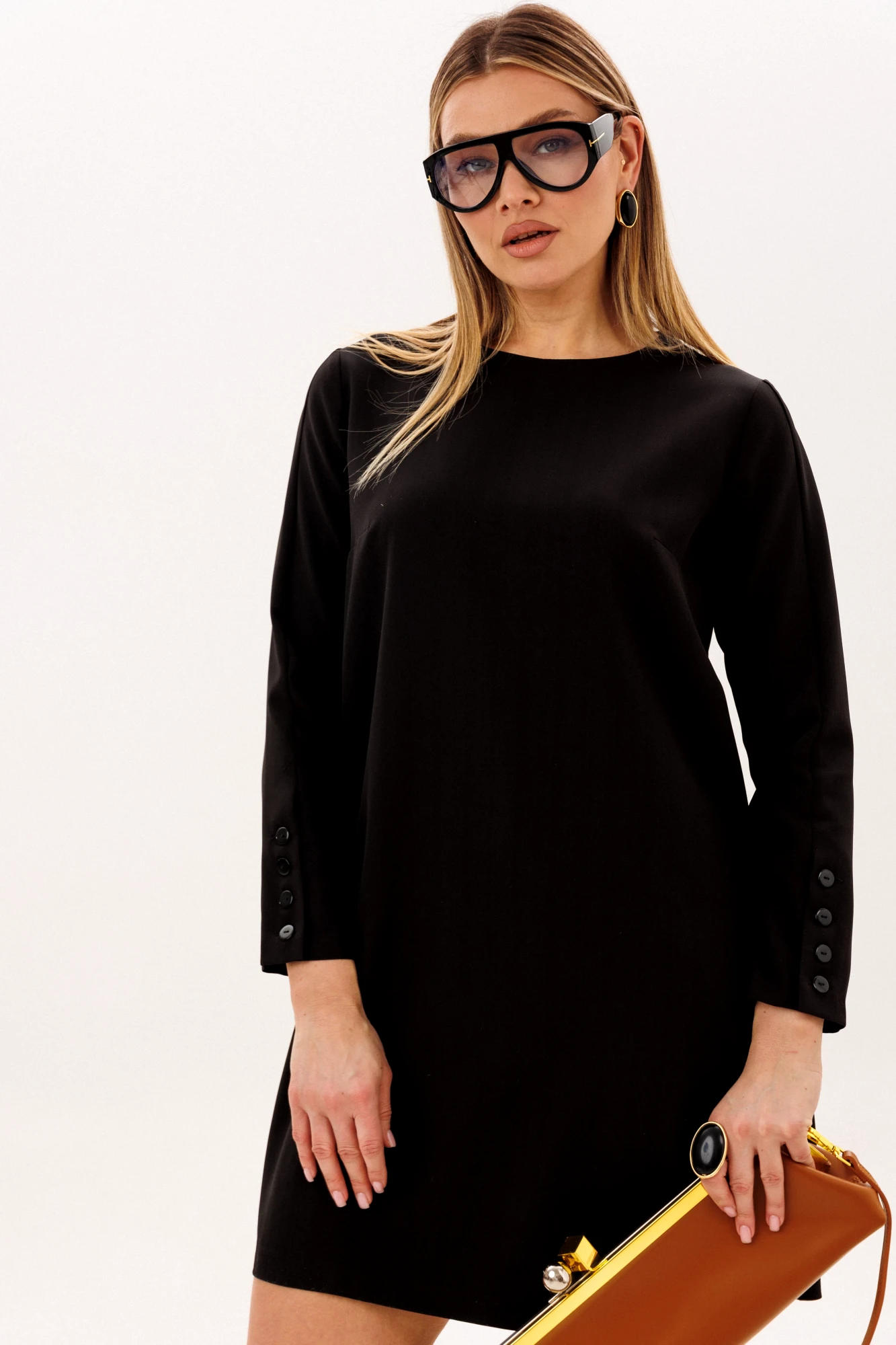 Это платье в цвете «ассам» словно создано для игры настроений. Мягкая ткань дарит ощущение комфорта, а безупречный прямой крой остаётся элегантным в любой ситуации. Длинные рукава с изящными пуговками добавляют лёгкую динамику строгому силуэту.