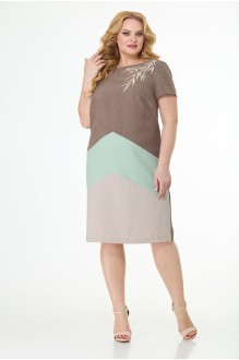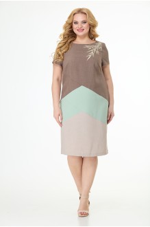 Полуприлегающий силуэт, перед разделён конструктивными линиями на геометрические детали, вырез горловины округлый, втачной короткий рукав.