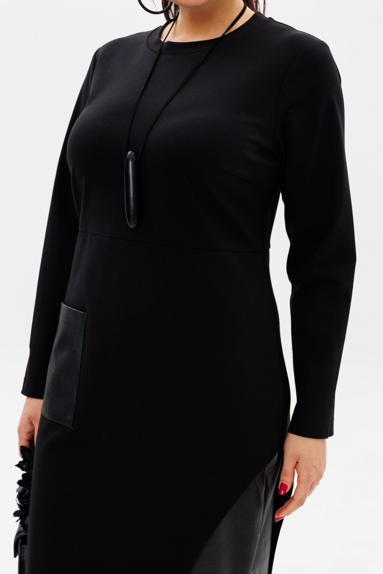 Нижняя юбка из эко кожи с оригинальным кроем создает динамичность, а накладной карман тоже из эко кожи добавляет нотку смелости и практичности. Длинные втачные рукава обеспечивают комфорт и стиль в любое время года.