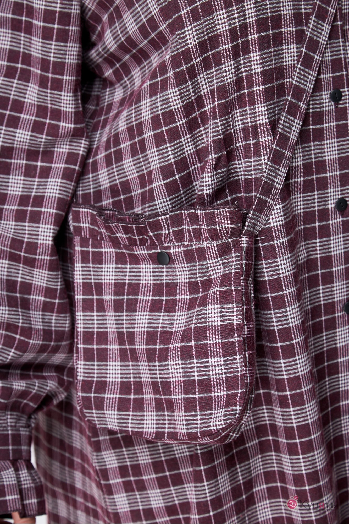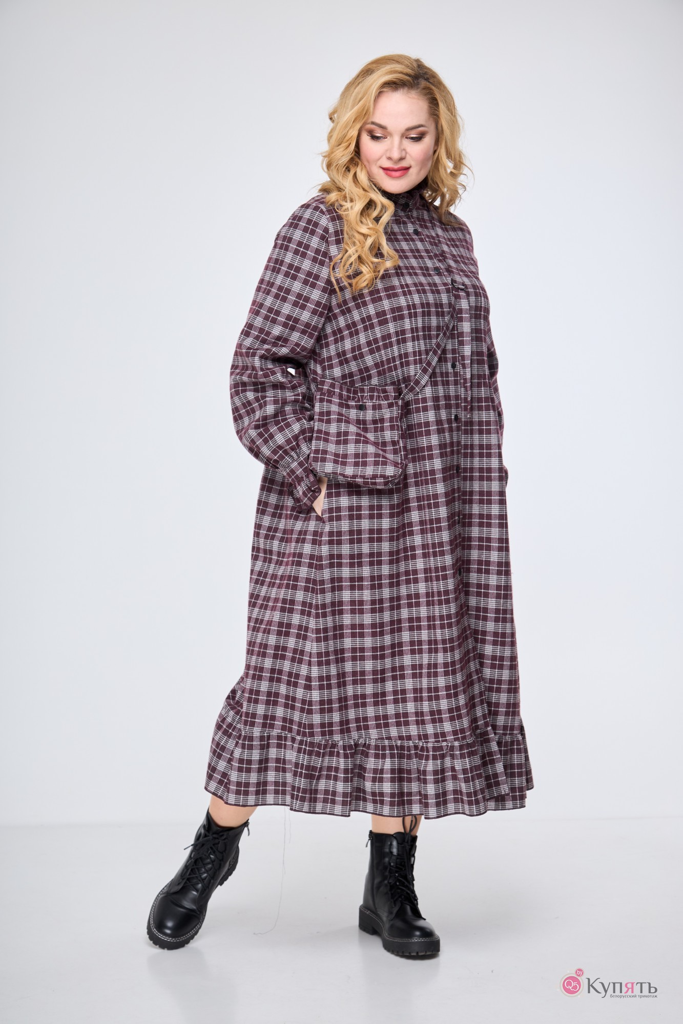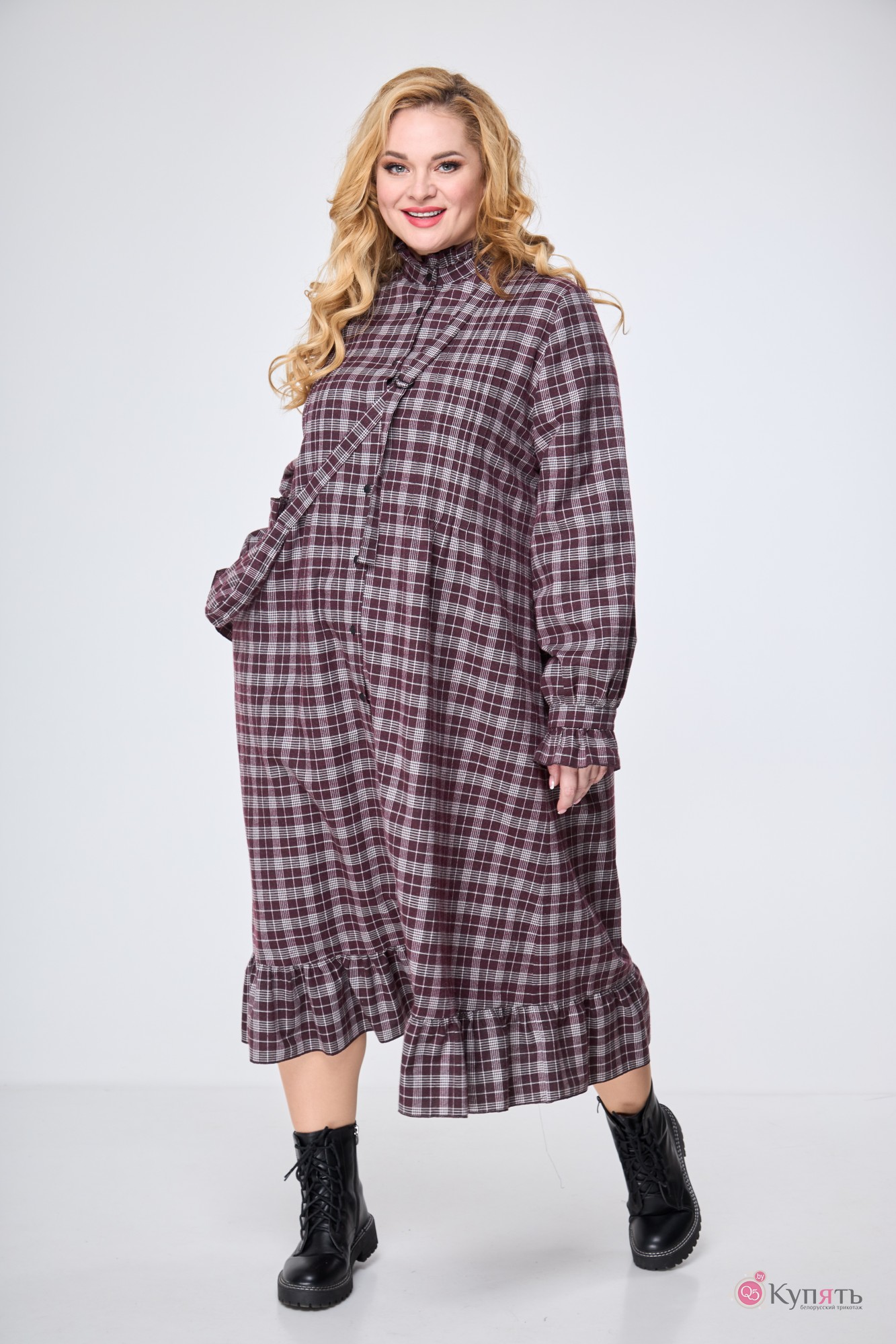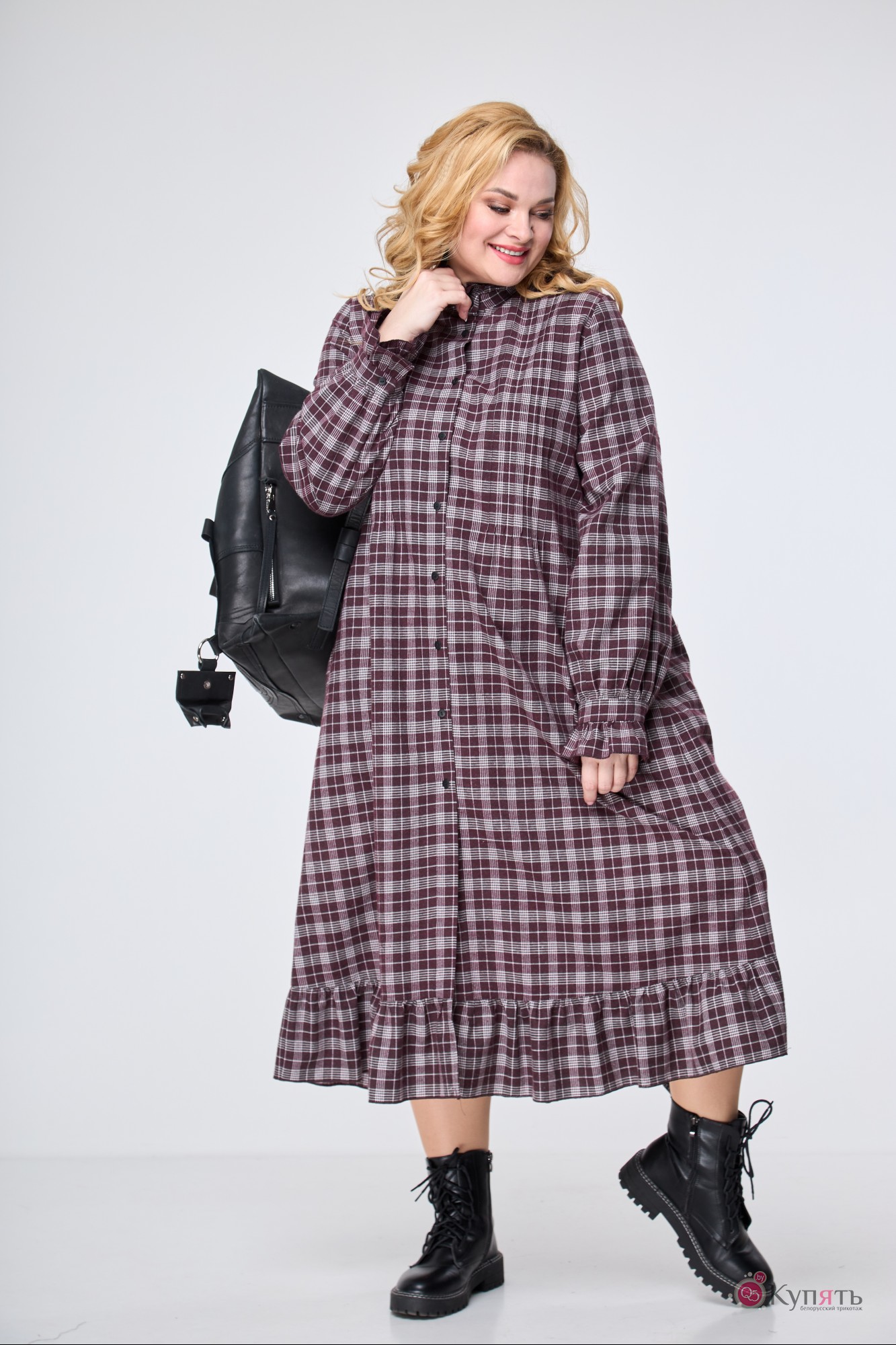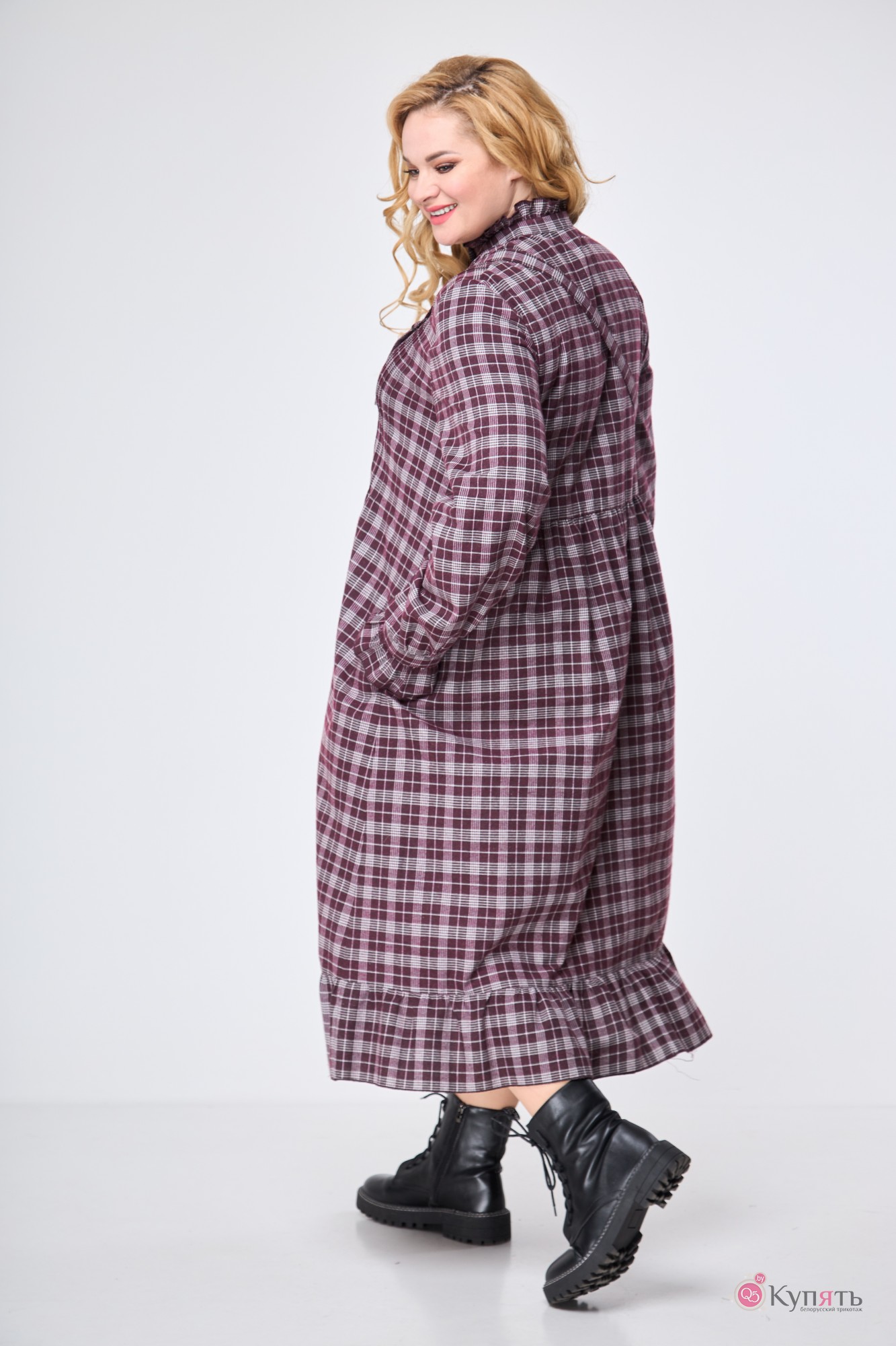 Наше платье в клетку с элементами романтизма: мелкие складочки на полочке, рюша по стойке горловины и по низу манжеты втачного рукава; волан по низу платья и по спинке на уровне талии. Слегка расширенный силуэт, длина миди.