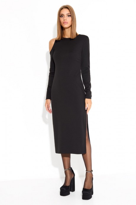 -прилегающего силуэта, с разрезом по левому боковому шву, длиной до середины икры;