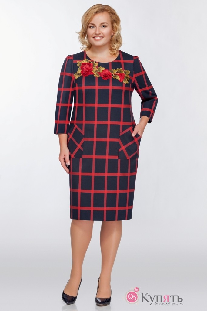 Платье Bagira 437 синий/красная клетка с вышивкой "цветы"