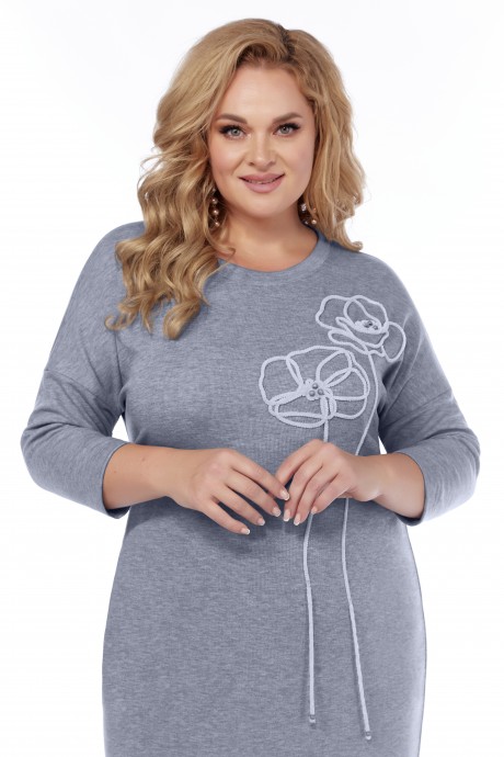 Женское платье полуприлегающего силуэта выполнено из мягкого теплого трикотажного полотна с начёсом внутри. По переду выполнена дизайнерская вышивка. Спинка цельная. Плечи спущены .Рукава одношовные длинные.