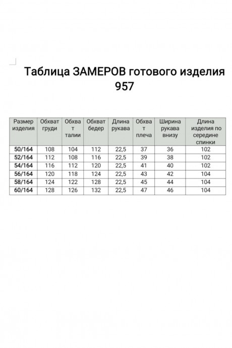 Таблица размеров