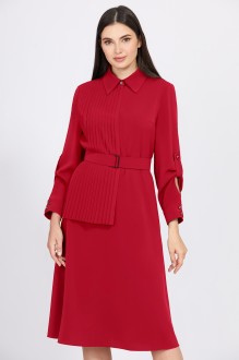 Лёгкое, струящееся платье X-образного силуэта длины миди, с интересным кроем рукавов и рубашечным воротником на стойке, выполнили из приятной, однотонной ткани. Лиф переда платья с застёжкой на петли и пуговицы дополнили отделочной деталью со складками на одно плечо. Линию талии красиво подчёркивает пояс в тон с контрастными пряжками. БЕЗ подкладки.