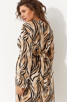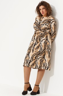 Полуприлегающее платье с анималистичным принтом – это смелый выбор для тех, кто хочет обратить на себя внимание и разнообразить свой гардероб. Изготовленное из мягкого и приятного к телу трикотажа, платье подчеркнёт женственные изгибы фигуры, создавая элегантный образ. Анималистичный принт, не выходящий из моды, придаёт наряду шарм и авантюрный дух. Округлый вырез обработан обтачкой, застёжка на пуговицу сзади. Эффектная моделирующая фигуру драпировка по линии талии создаётся благодаря цельнокроеному поясу. Снизу разрез по боковому шву. Это платье универсально и подойдёт как для работы, так и для романтического ужина либо отдыха с друзьями.