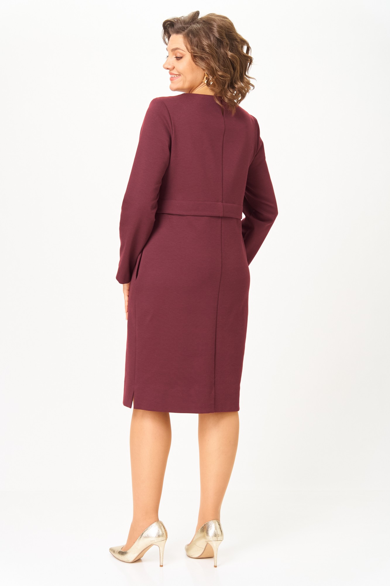 Элегантное женское платье, выполнено из трикотажного полотна. Платье полуприлегающего силуэта. По переду и спинке фигурный подрез на уровне талии. По левой стороне переда на уровне груди накладной карман с пришивной брошкой, горловина круглая, талия собрана на кулису. Рукава втачные. Брошка на груди может отличаться!