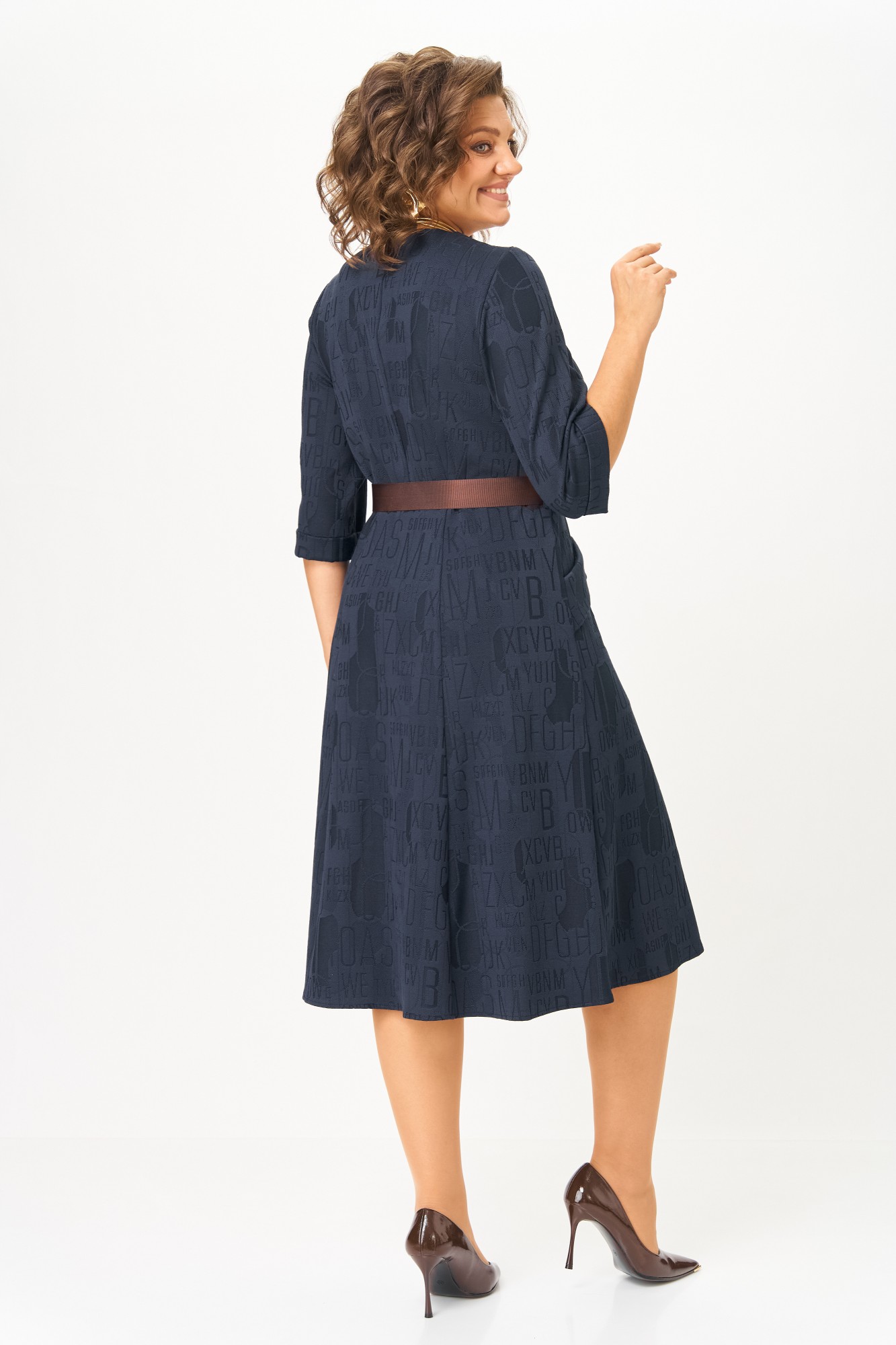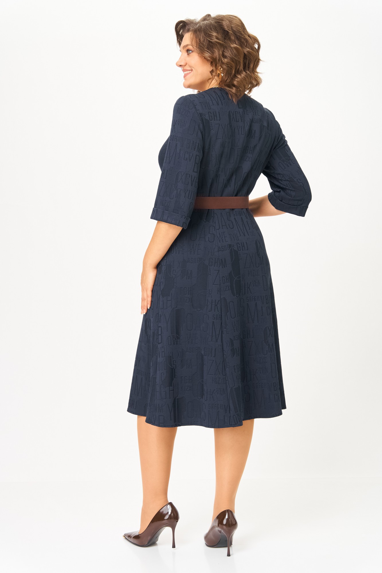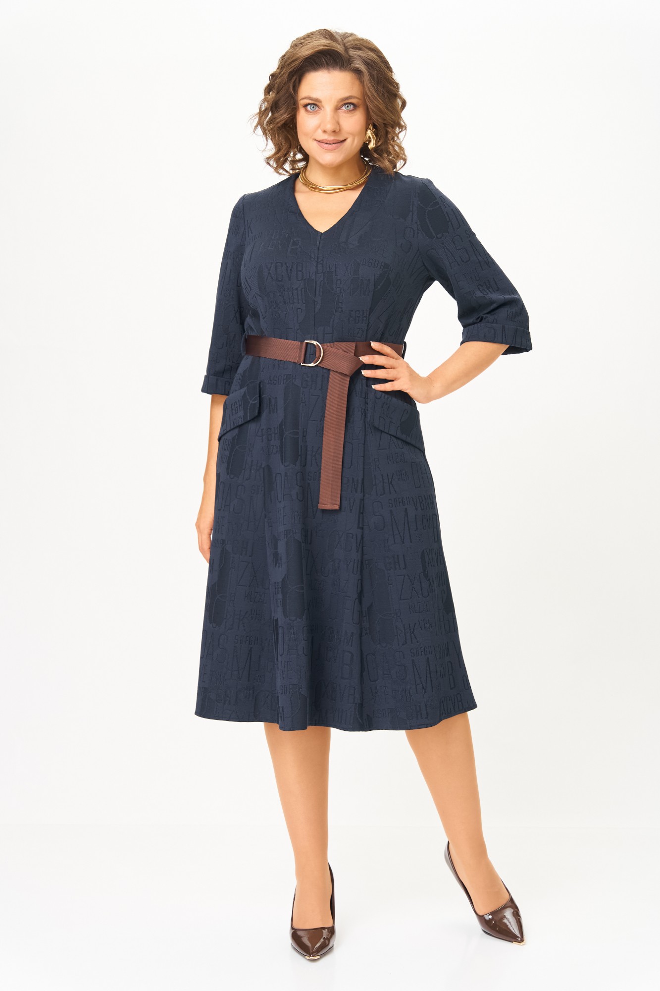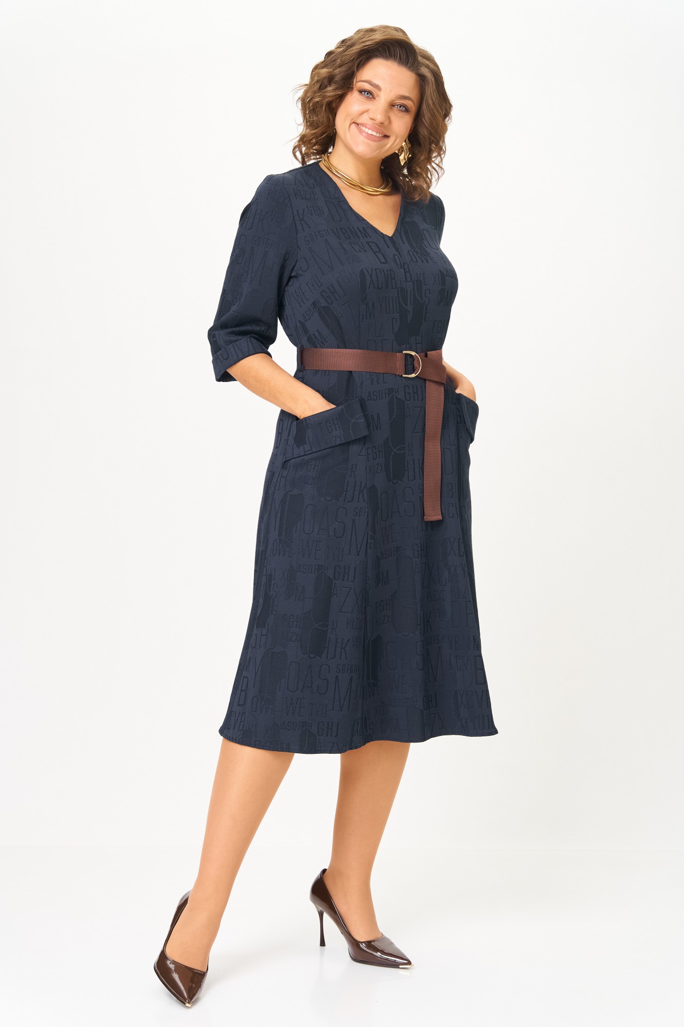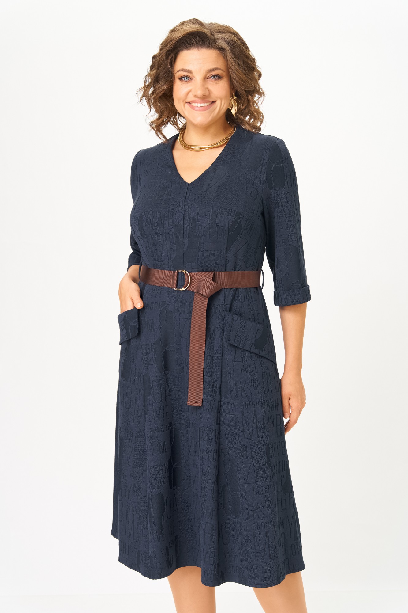 Стильное женское платье из комфортного трикотажа. Платье полуприлегающего силуэта, отрезное по линии талии, юбка шестиклинка, расширенная к низу. На уровне бедер карманы с отложенным клапаном. На лифе по переду центральный шов, горловина V-образная. Рукава втачные одношовные с отложной манжетой. В комплект входит ремень из тесьмы. Платье без подкладки.