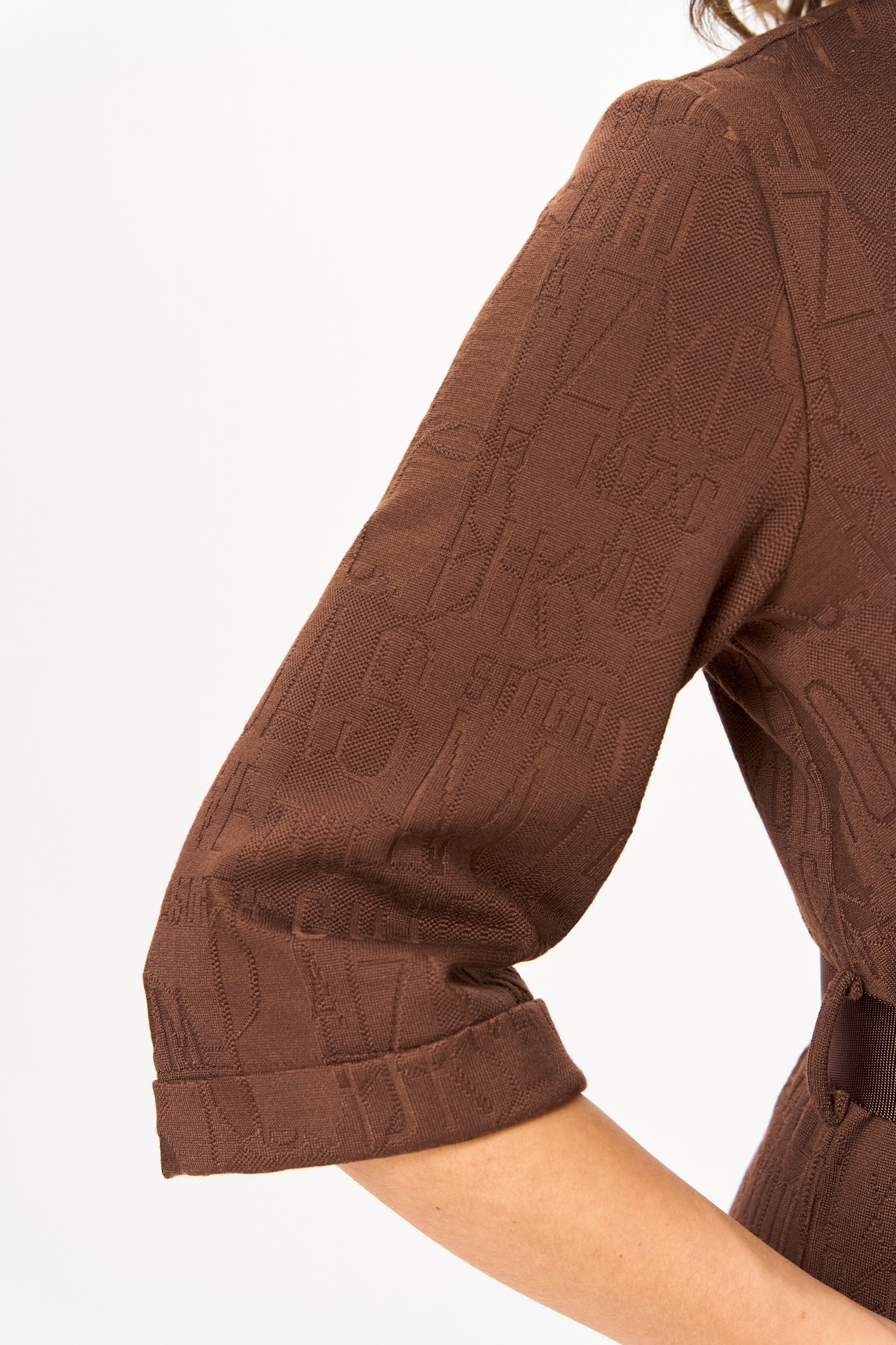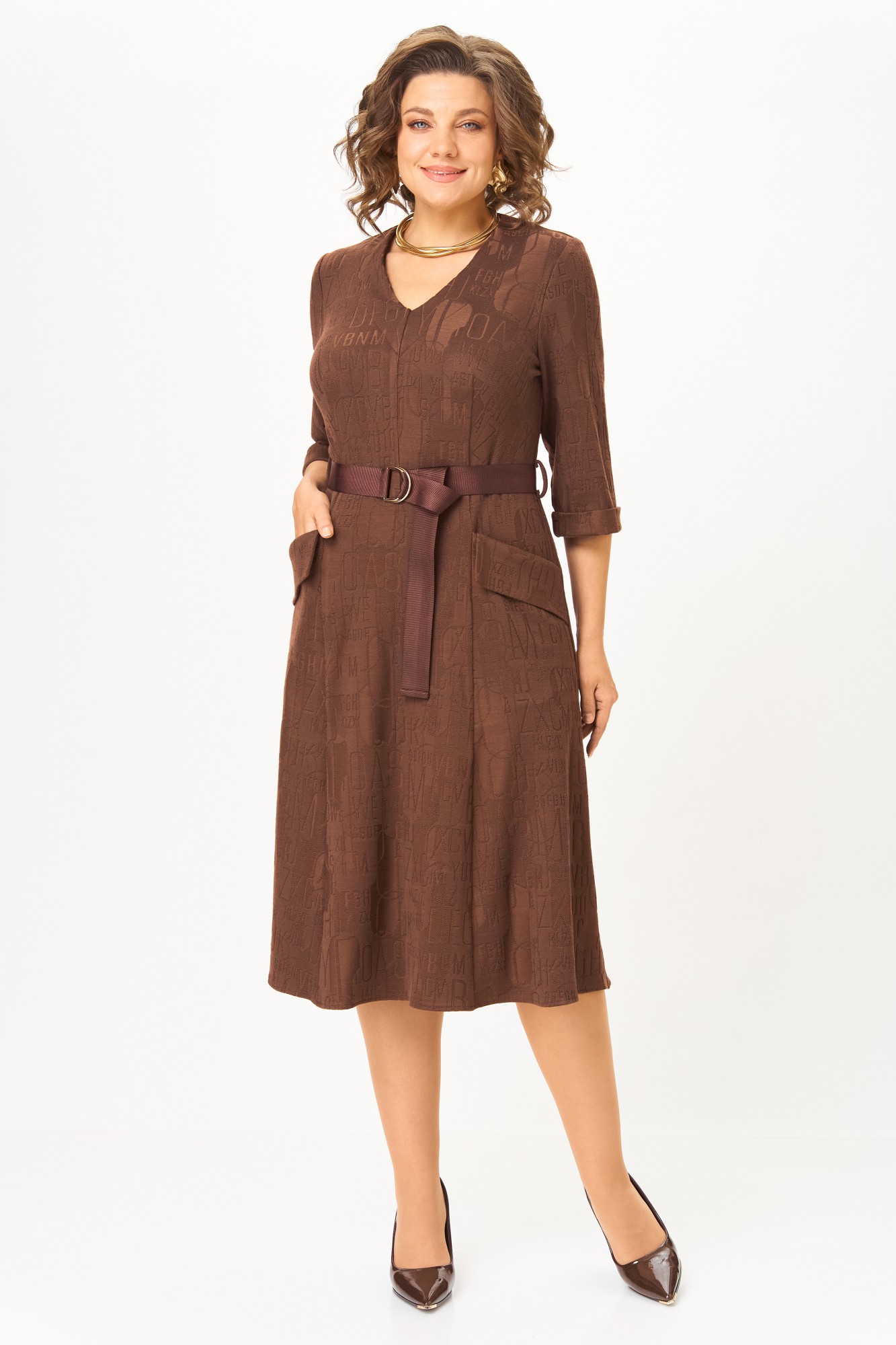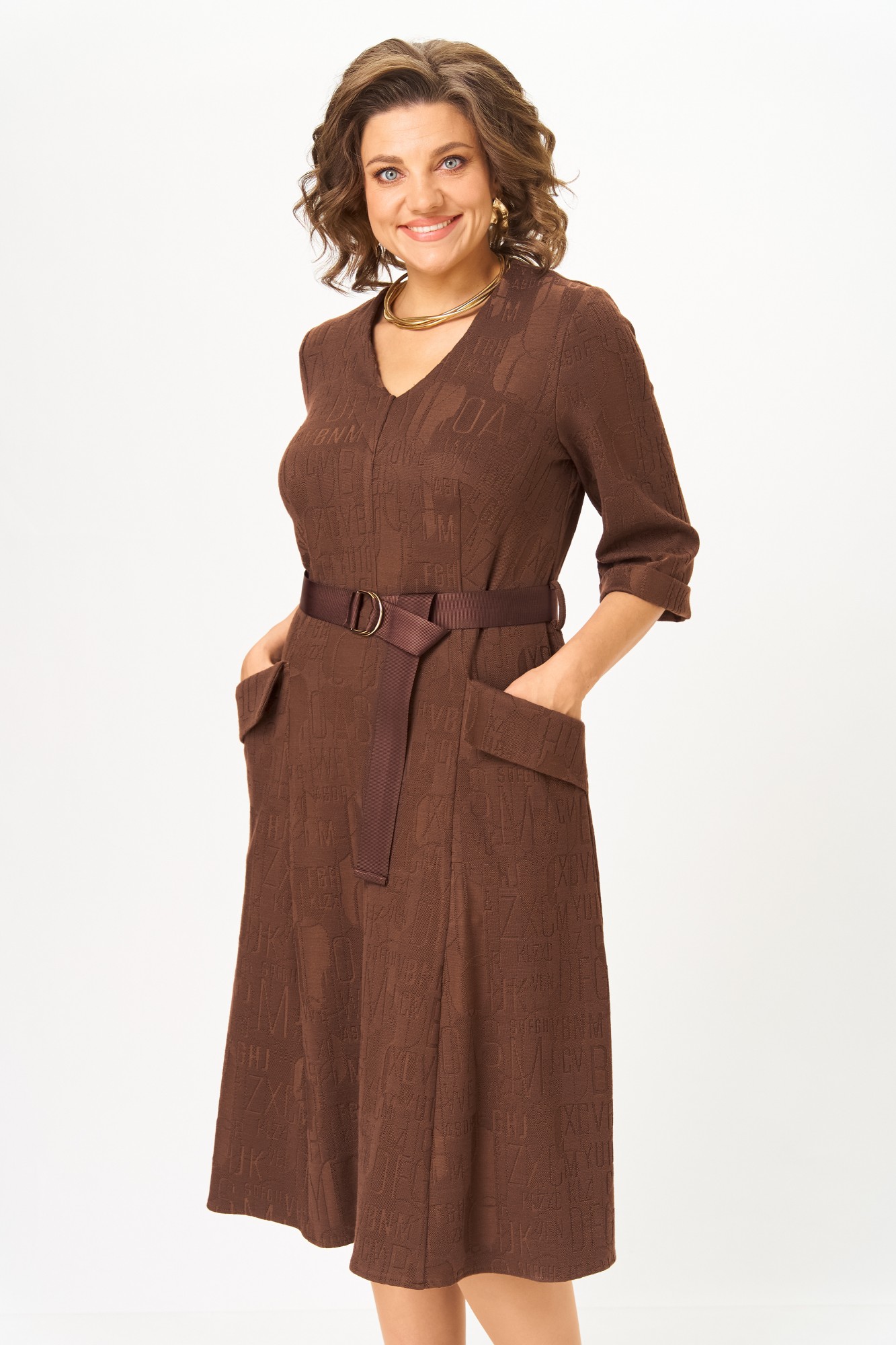 Стильное женское платье из комфортного трикотажа. Платье полуприлегающего силуэта, отрезное по линии талии, юбка шестиклинка, расширенная к низу. На уровне бедер карманы с отложенным клапаном. На лифе по переду центральный шов, горловина V-образная. Рукава втачные одношовные с отложной манжетой. В комплект входит ремень из тесьмы. Платье без подкладки.