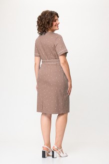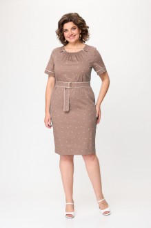 Элегантное женское платье выполнено из хлопка с содержанием эластана. Платье полуприлегающего силуэта. Горловина круглая, собрана на резинку с декоративными бусинам. Застежка в среднем шве спинки на тесьму молния. Рукава втачные с декоративным кантом понизу. В комплект ходит съемный пояс на пряжке и с декоративным кантом. Платье без подкладки.