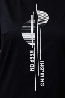 Хлопковое платье с акцентом по переду. Силуэт платья вытягивает фигуру. По переду выполнена печать "серебрянной пленкой". По спинке молния с декоративной лентой.