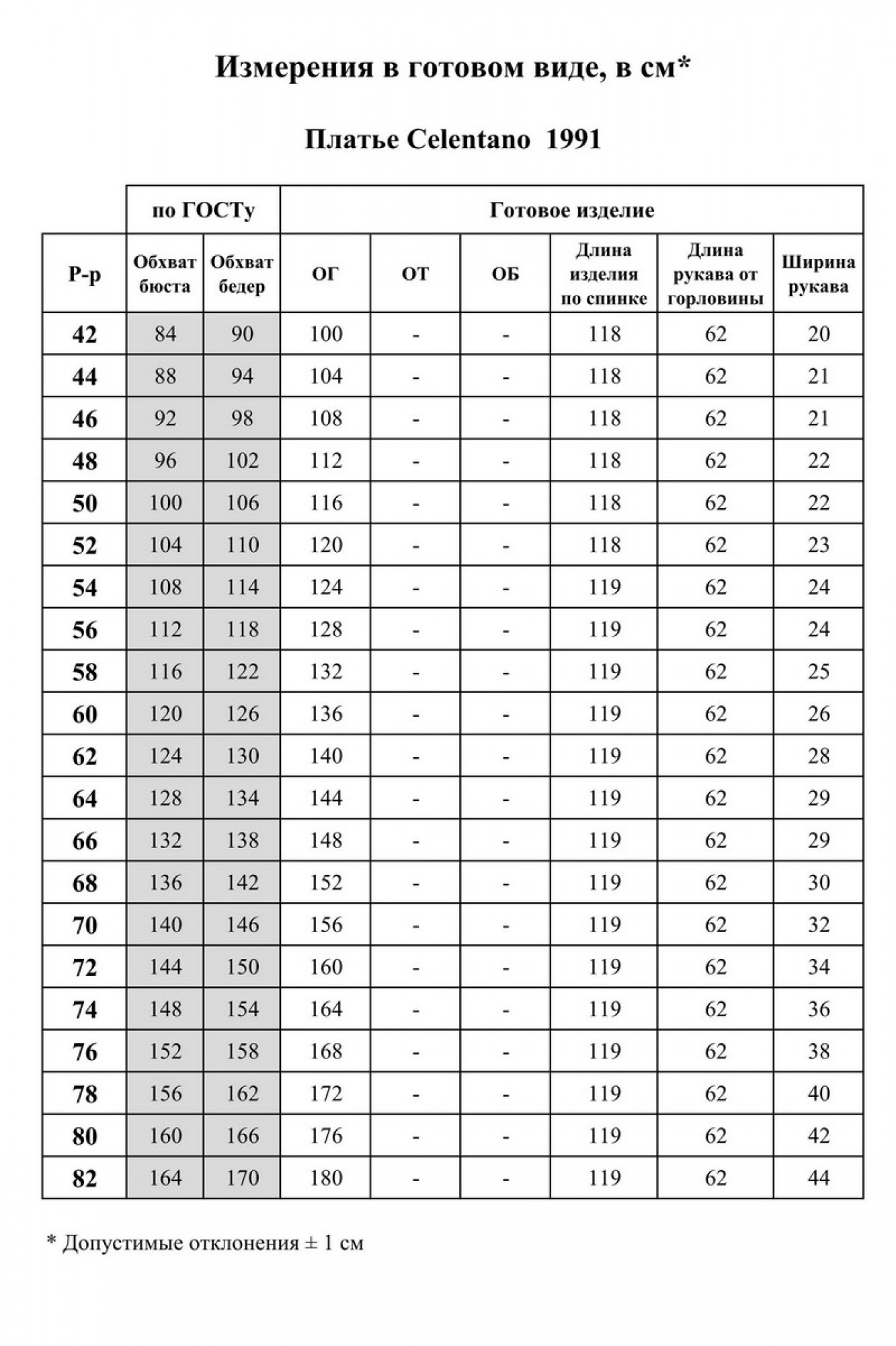 Таблица размеров