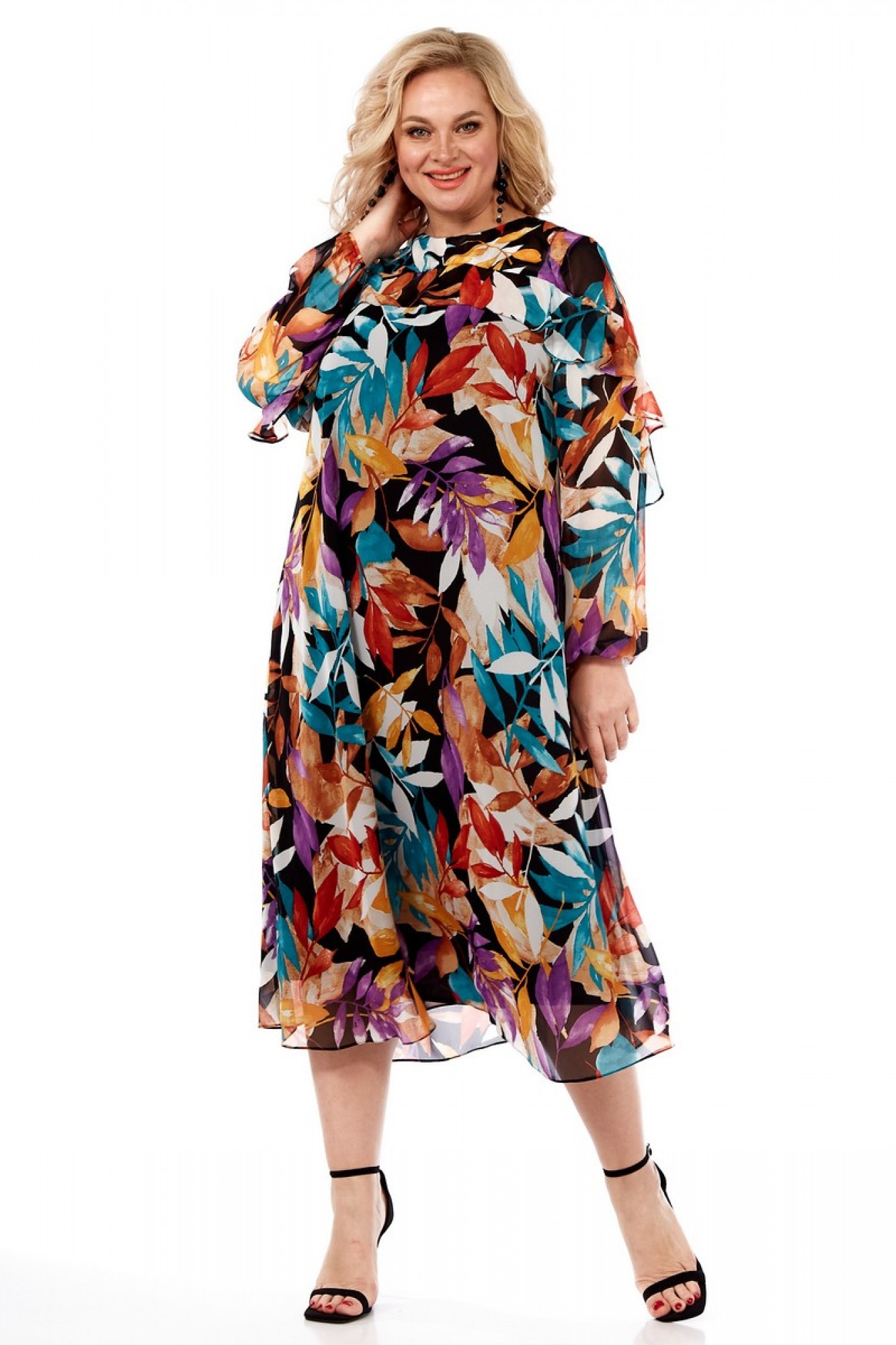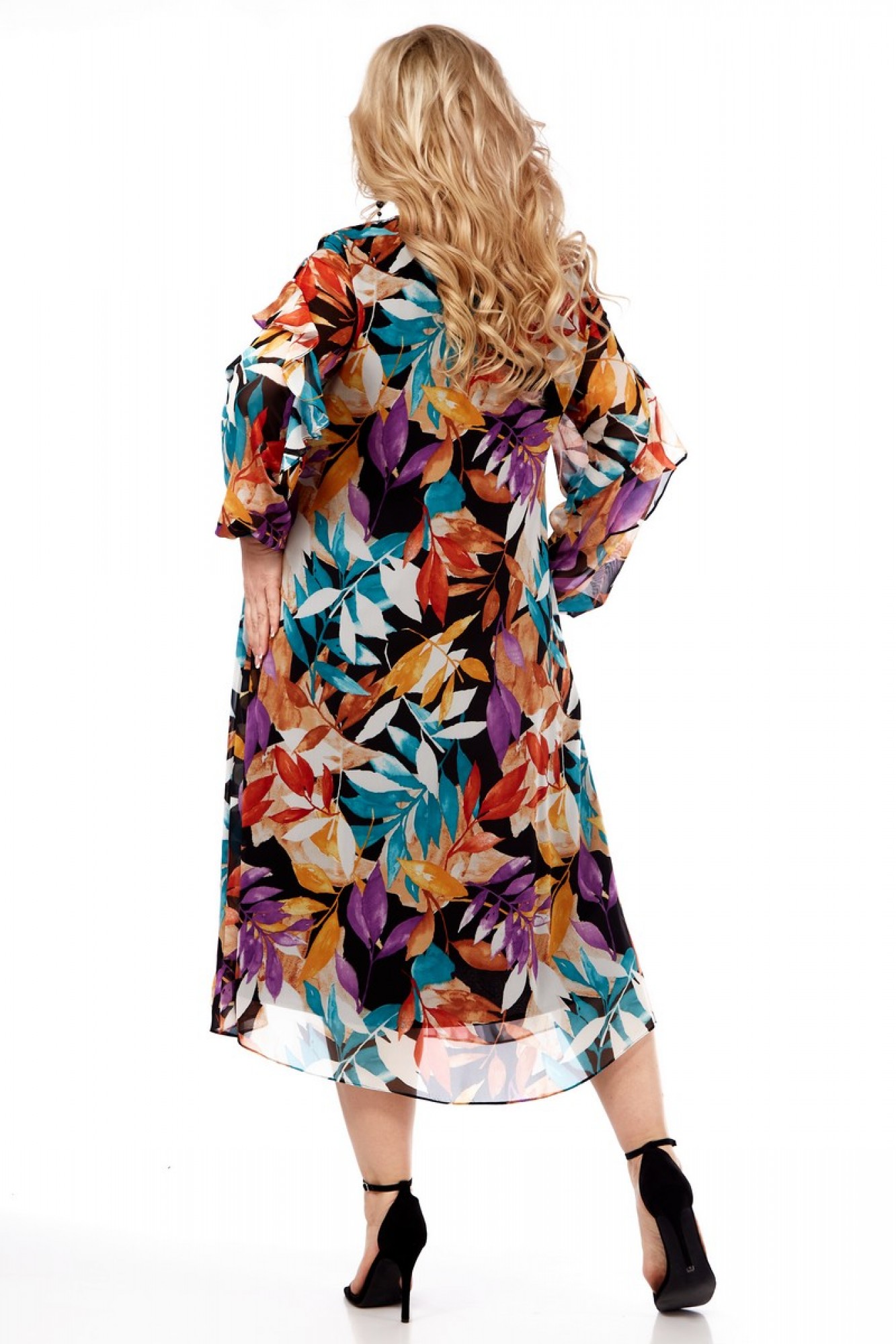 По полочке обработана кокетка, в которую вставлен притачной волан, переходящий на рукав. Спинка цельная. На спинке застежка на петлю и пуговицу. Рукав втачной одношовный, низ рукава на резинке. Платье на текстильной вискозной подкладке.