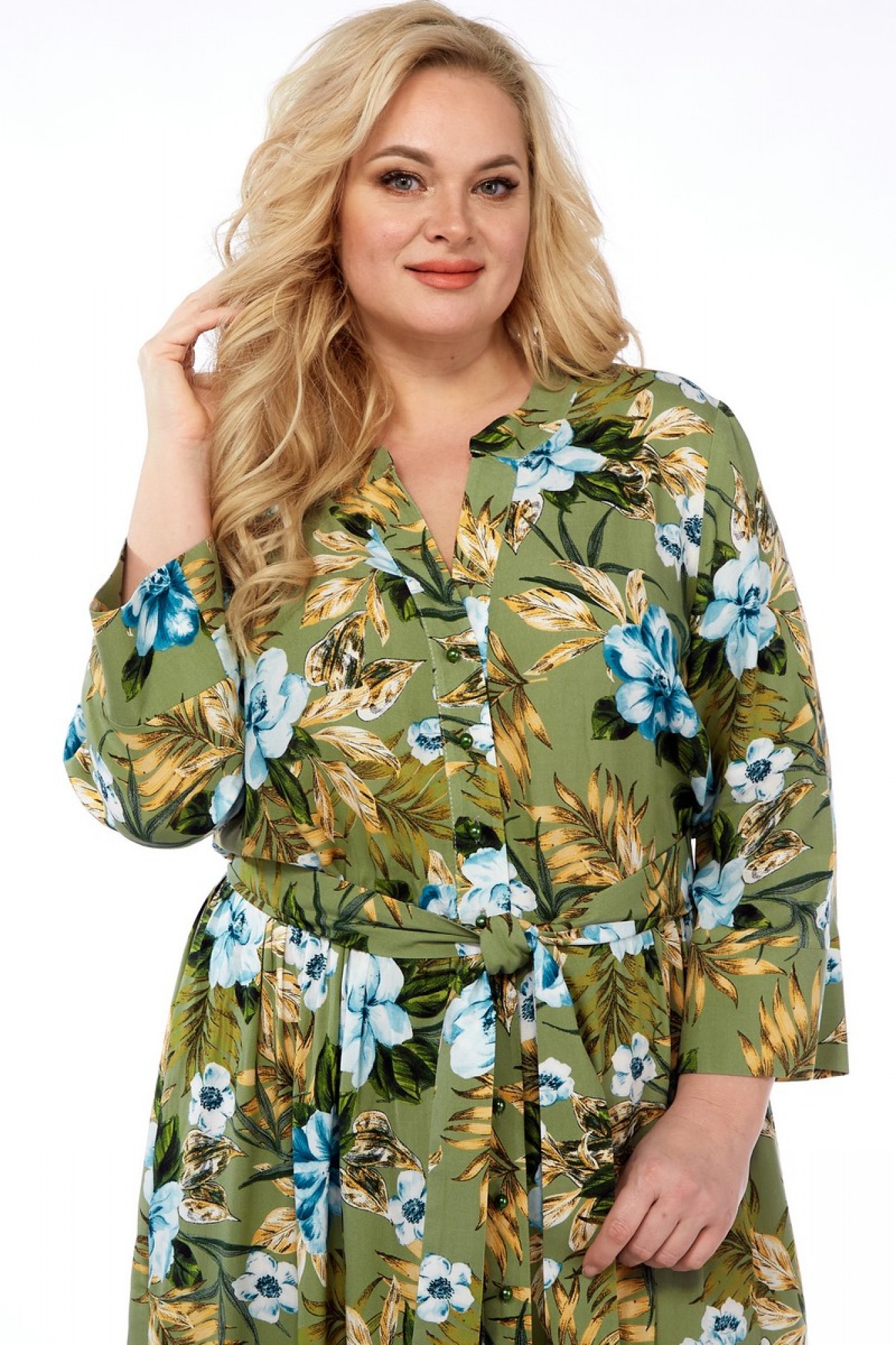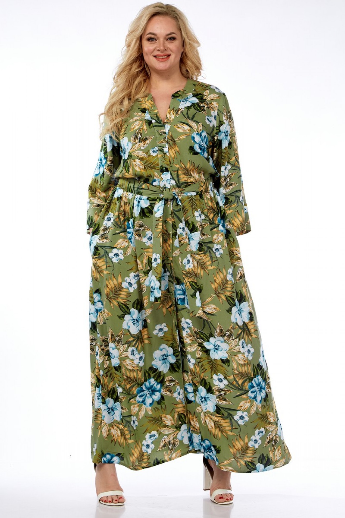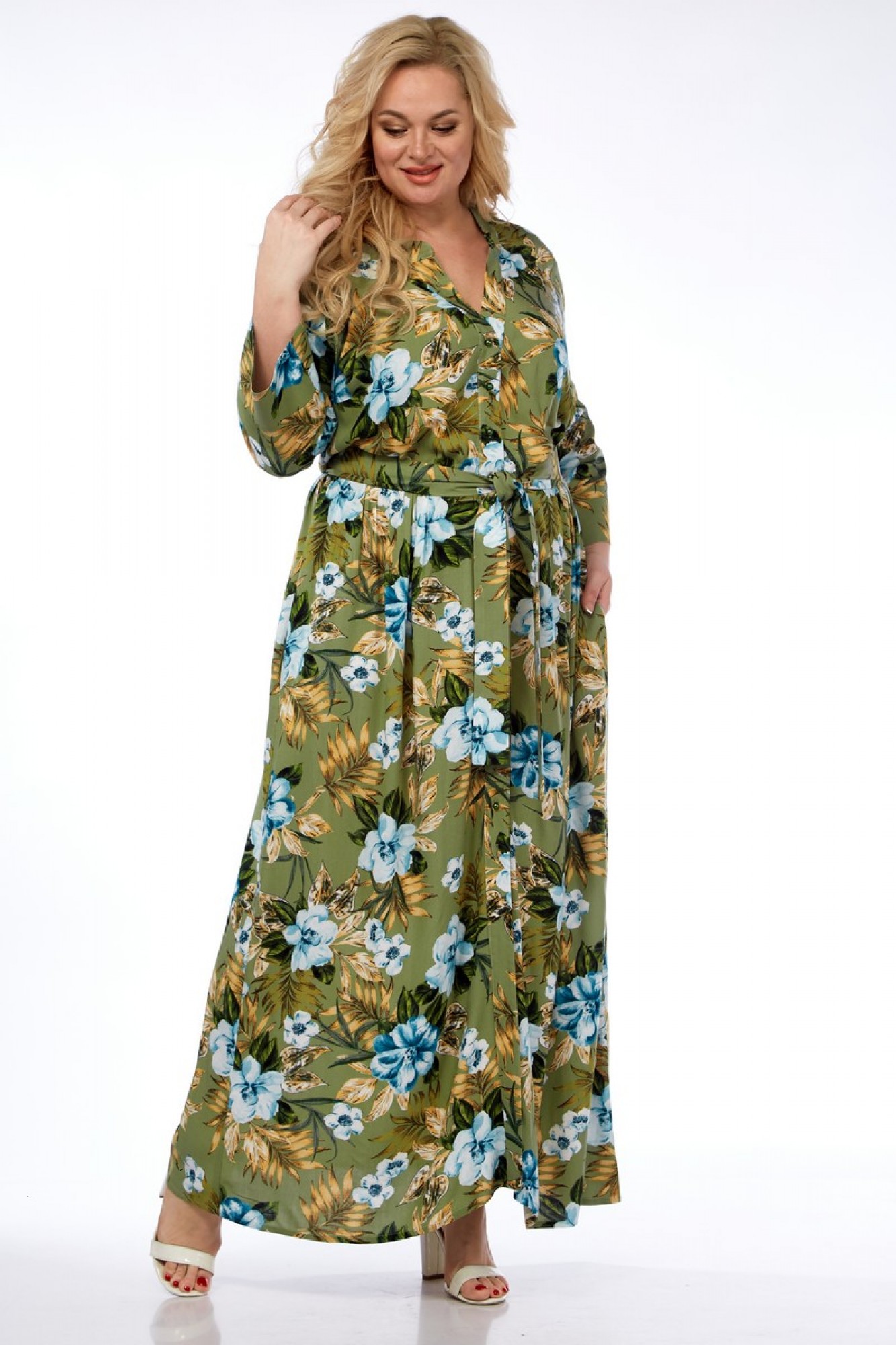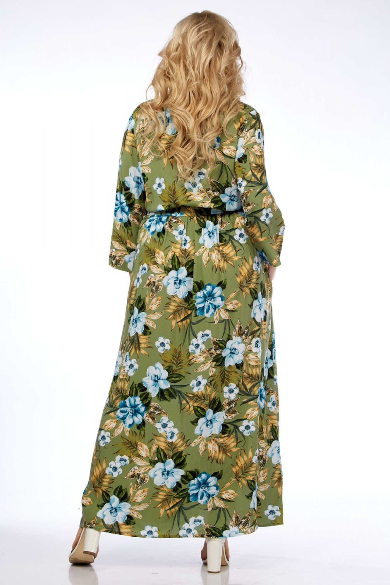 Платье выполнено из мягкой штапельной ткани устойчивой окраски. Рекомендуется вертикальная сушка.