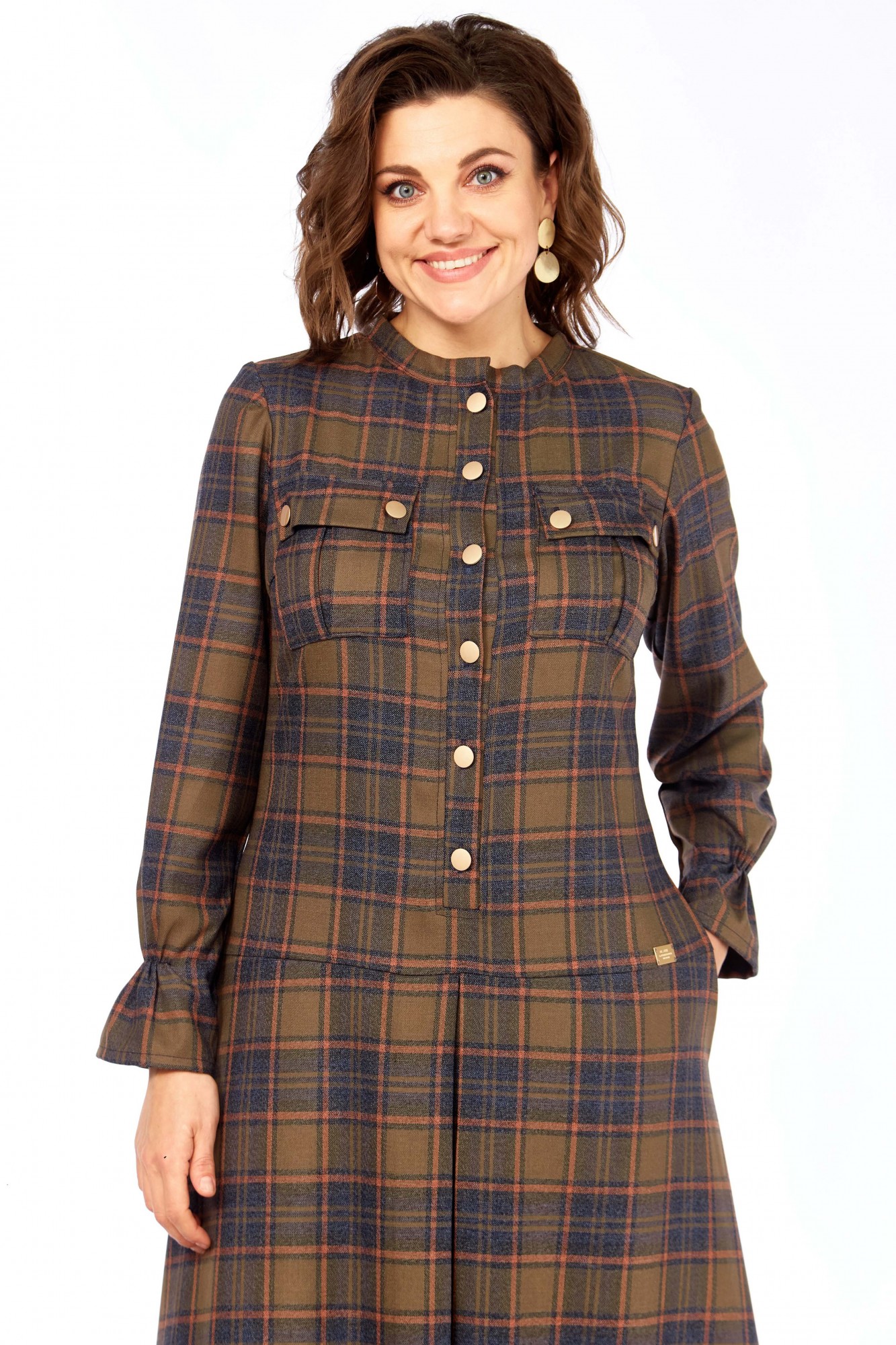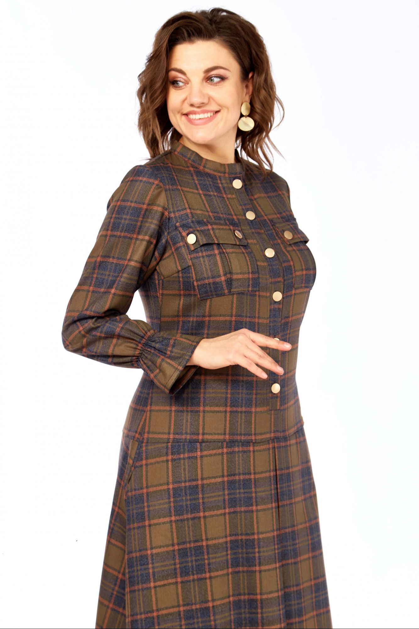 Это платье —ода динамичной женственности и смелой интерпретации классики. Силуэт, подчёркивающий фигуру, но не сковывающий, обволакивает мягкой уверенностью. Строгий, но изящный воротник-стойка задаёт тон, переходя в планку, усыпанную рядом сияющих золотистых кнопок. Они добавляя платью благородного блеска и структурности. На груди расположились два накладных кармана с аккуратными клапанами, придающие образу лёгкий налёт деловой практичности и утончённости. Длинные рукава, облегающие, но комфортные, завершаются очаровательными манжетами. Слегка присборенные, они создают мягкий, игривый объем у запястья, напоминая о лёгких облаках или старинных бальных платьях. Платье А- силуэта в клетку из качественной натуральной ткани (шерсть и хлопок) от Celentano. Воротник-стойка, по полочке и спинке идет подрез чуть ниже линии талии, от которого на полочке выполнена встречная складка. Полочка с центральной застежкой на кнопки, нагрудными вытачками и карманами-хулиганами. Спинка с центральным швом и таллиевыми вытачками. Рукав втачной одношовныйа на конце манжета с легкой сборкой. Кнопки на платье металлические.