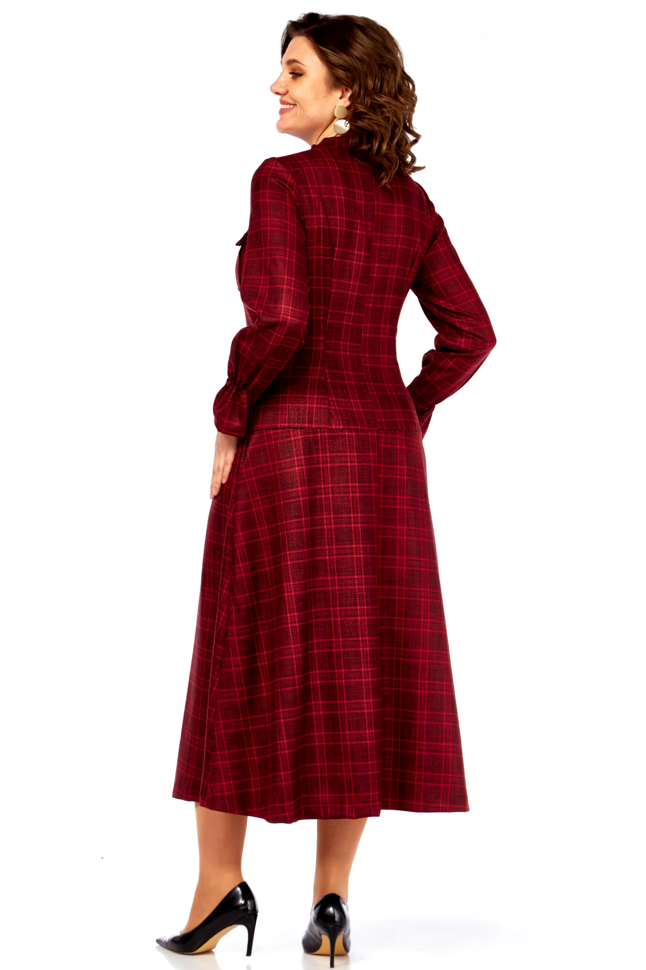 Платье Celentano 5078 бордовая клетка