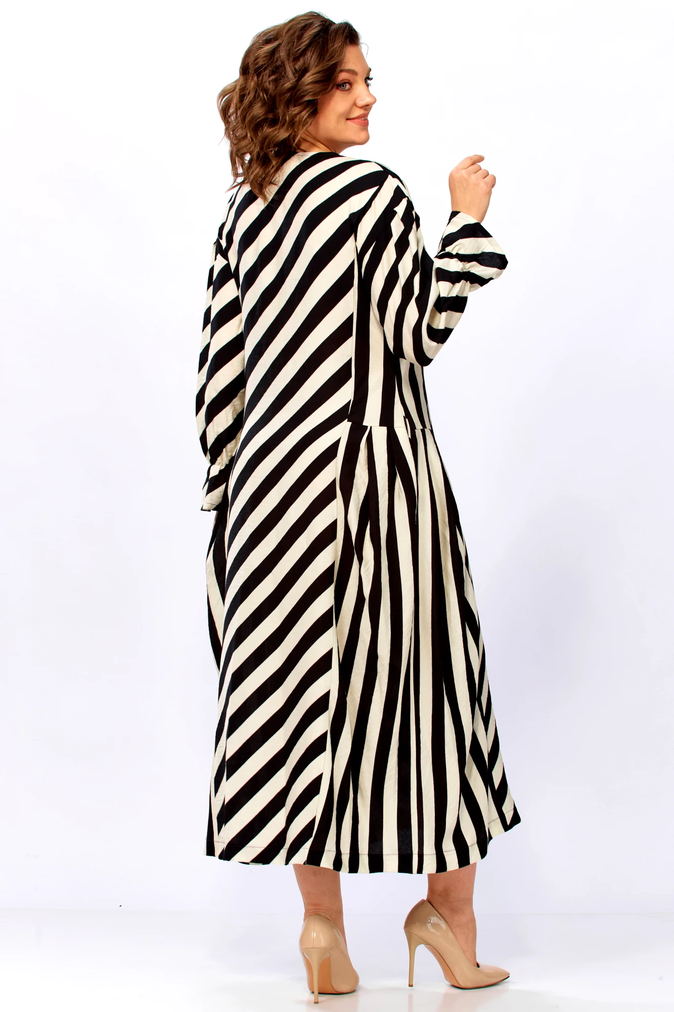 3. Для дам с формами: крой и направление полос мастерски моделируют гармоничный силуэт.